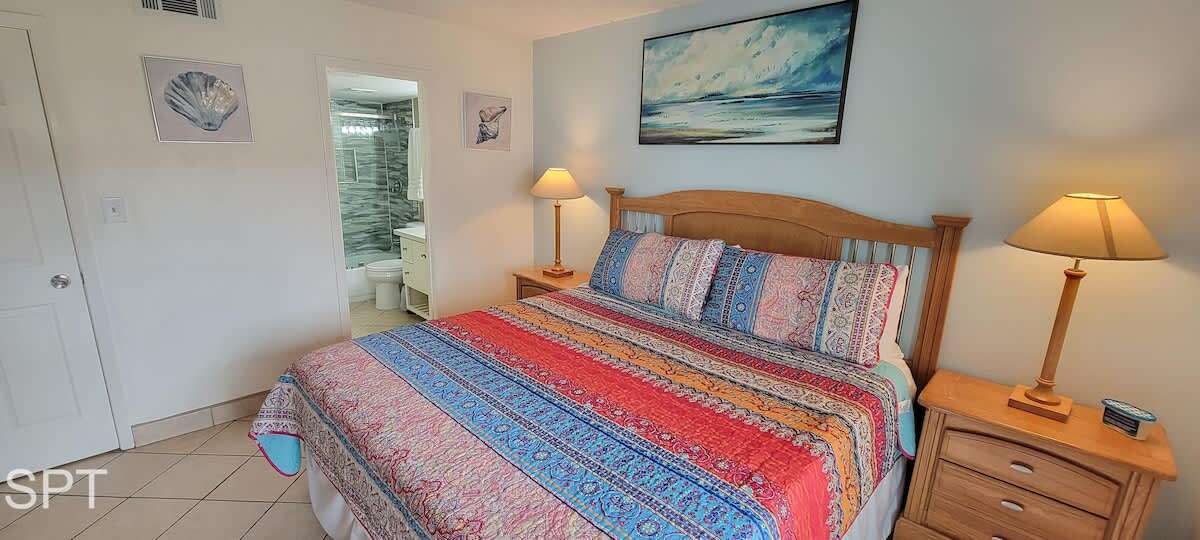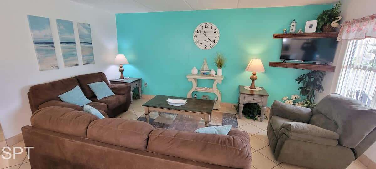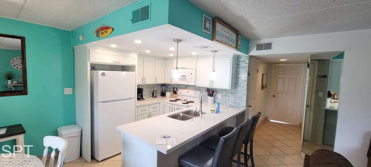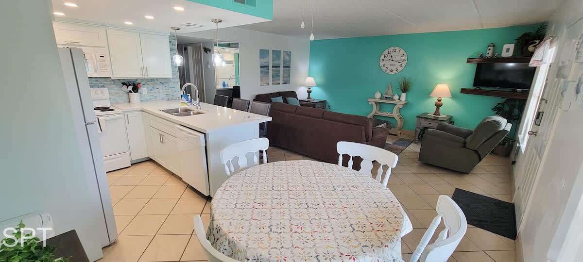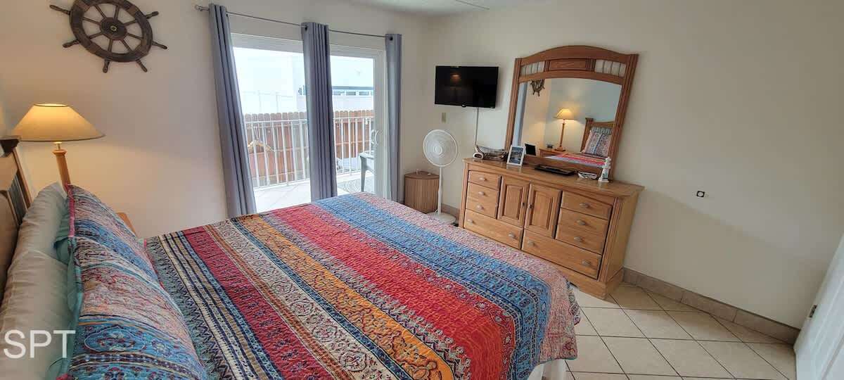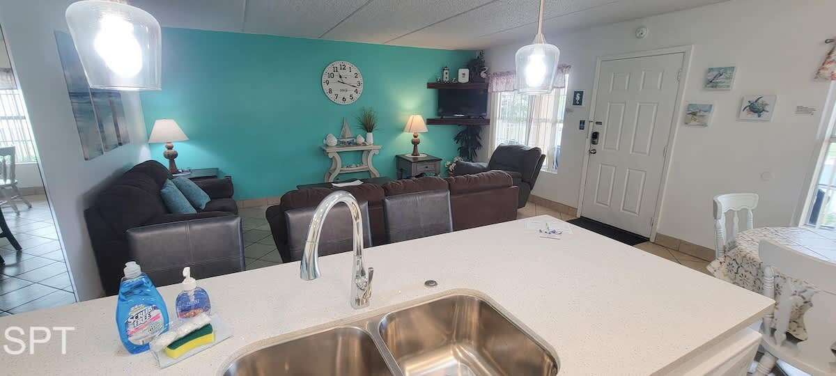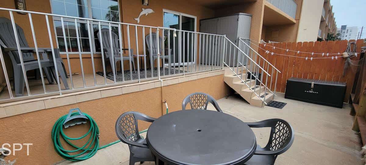 Our condo is super duper family friendly at Fiesta Sol and is a ground-floor space with a front patio and private back patio that overlooks the pool area. The condo is located just ½ block from public beach access point of number 7, and such a short walk to the entertainment district, offering dozens of bars and restaurants that makes it an unbeatable choice at this price!