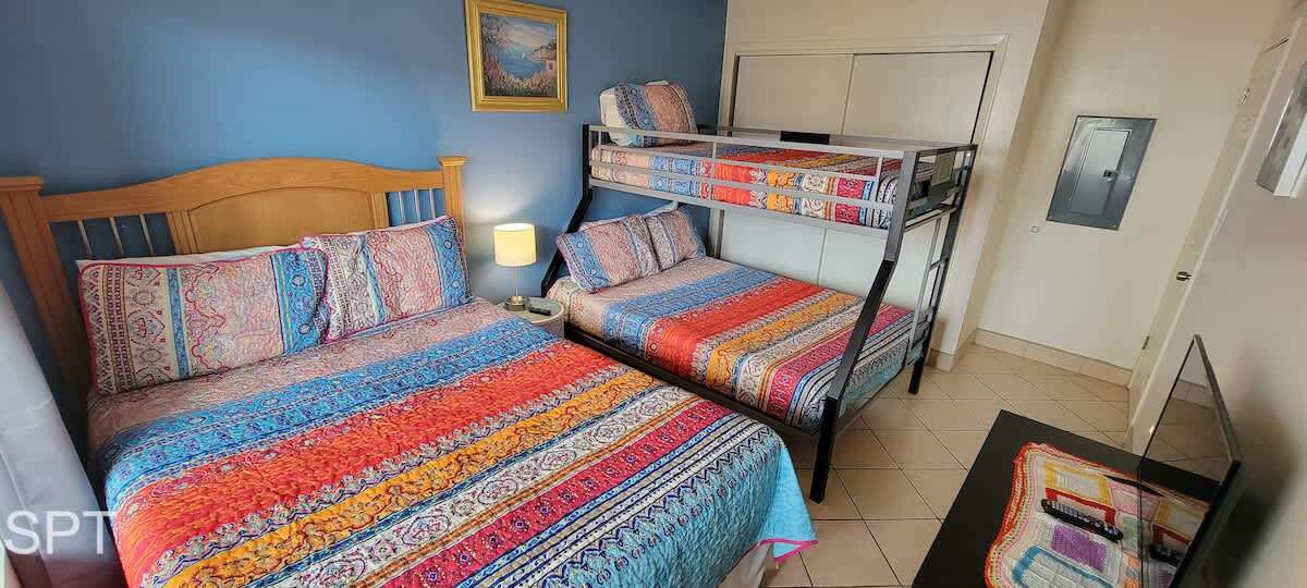 The condo has undergone many updates, but please note it is not “brand new†nor “fully remodeled†on the inside, nor is the building itself luxurious. Each bedroom features a smart TV, and there is internet/WiFi available for work or entertainment. We just want to accurately describe the space.