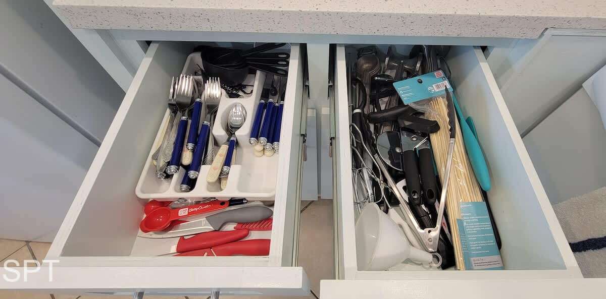 After a big day at the beach, there is a pool you can see from the ground-floor patio in the back, perfect your kids to enjoy. The fully equipped kitchen includes pots, pans, and dishes for easy meal prep with an eat-in counter and dining table which definitely saves some money on your beach vaca