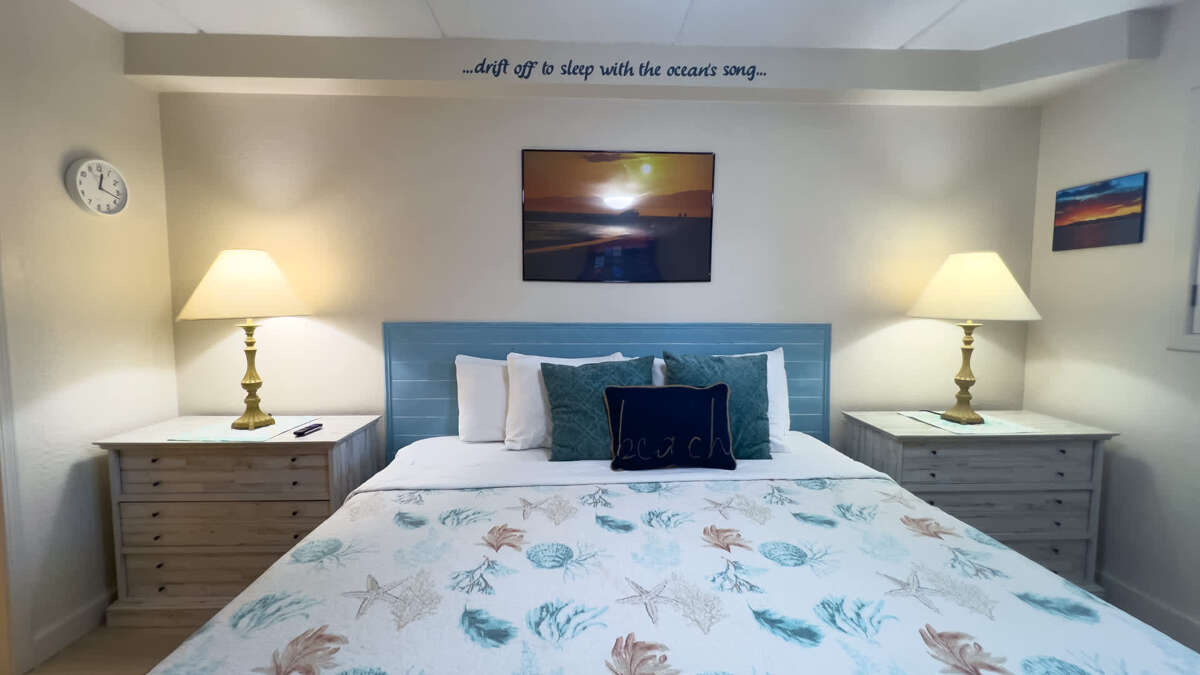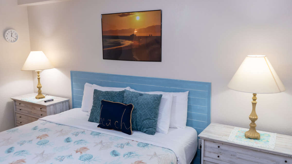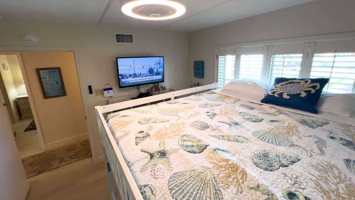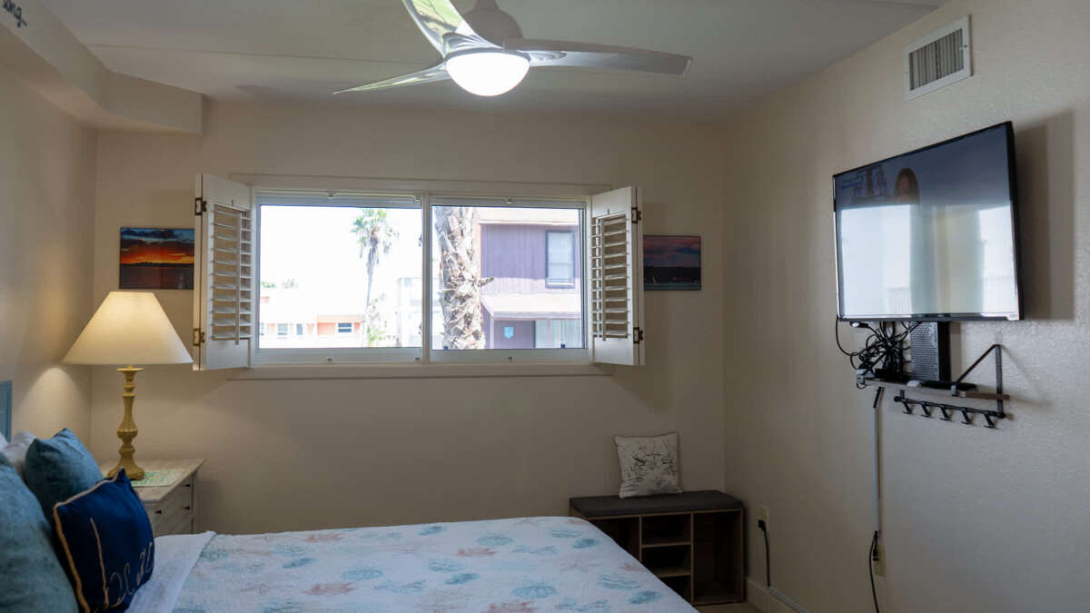 Their is a dining table plus additional seating at the eat in counter. Your living room has a large screen smart TV for movie apps & great for an end of the day wind down with your family that flows from the kitchen. The living room does have a sleeper sofa for extra sleeping space. One of the nice features of this space is a truly large outdoor patio that gives your family more space for reading, enjoying drinks, or using the outdoor BBQ grill.(please remember to bring propane as not provided) . This condo has larger than normal square footage, which makes it seem larger compared to most two bedroom condos on SPI.