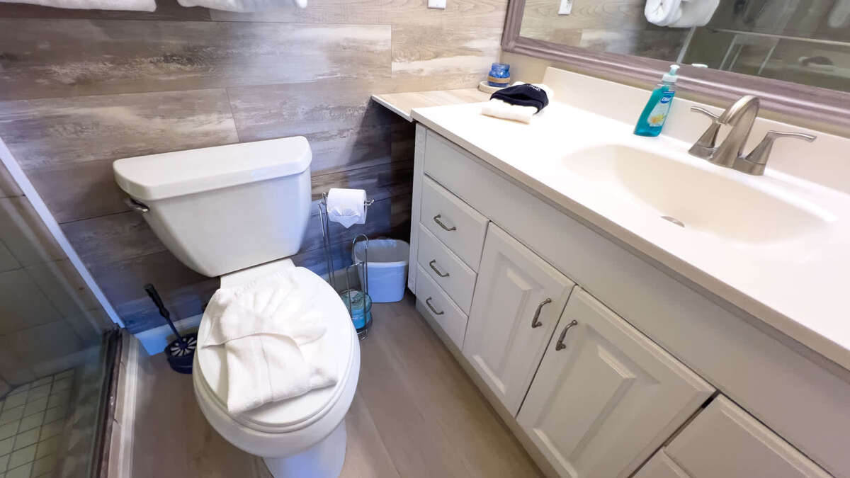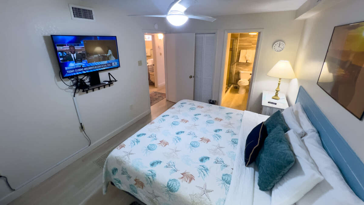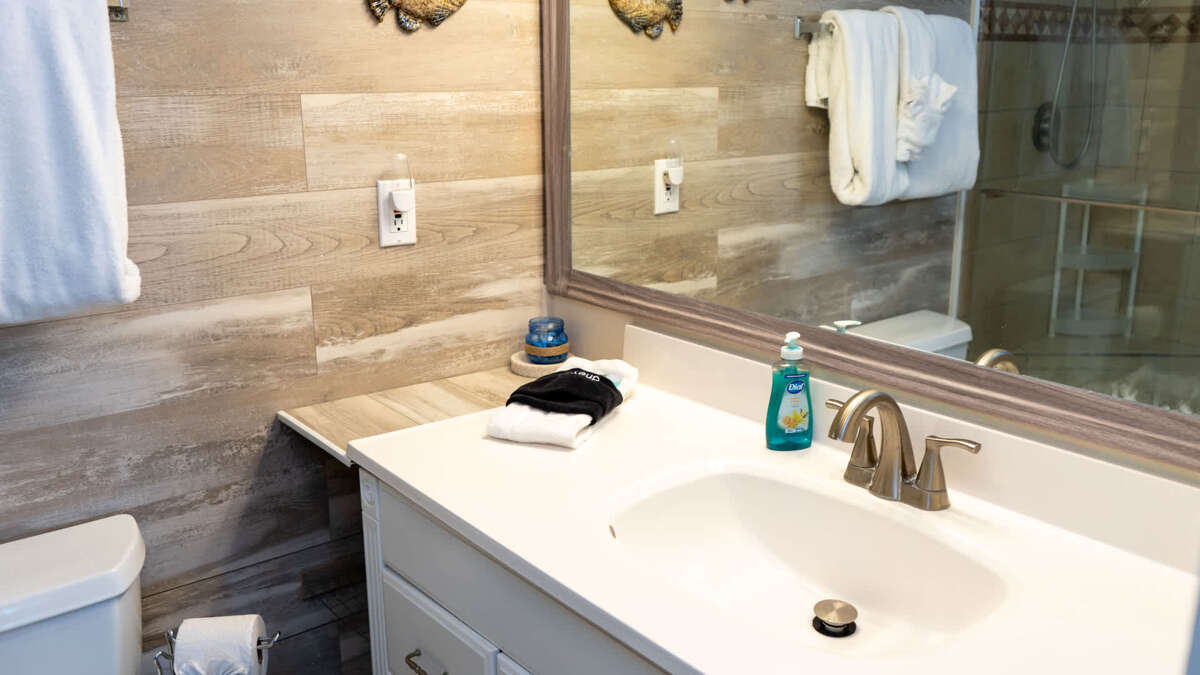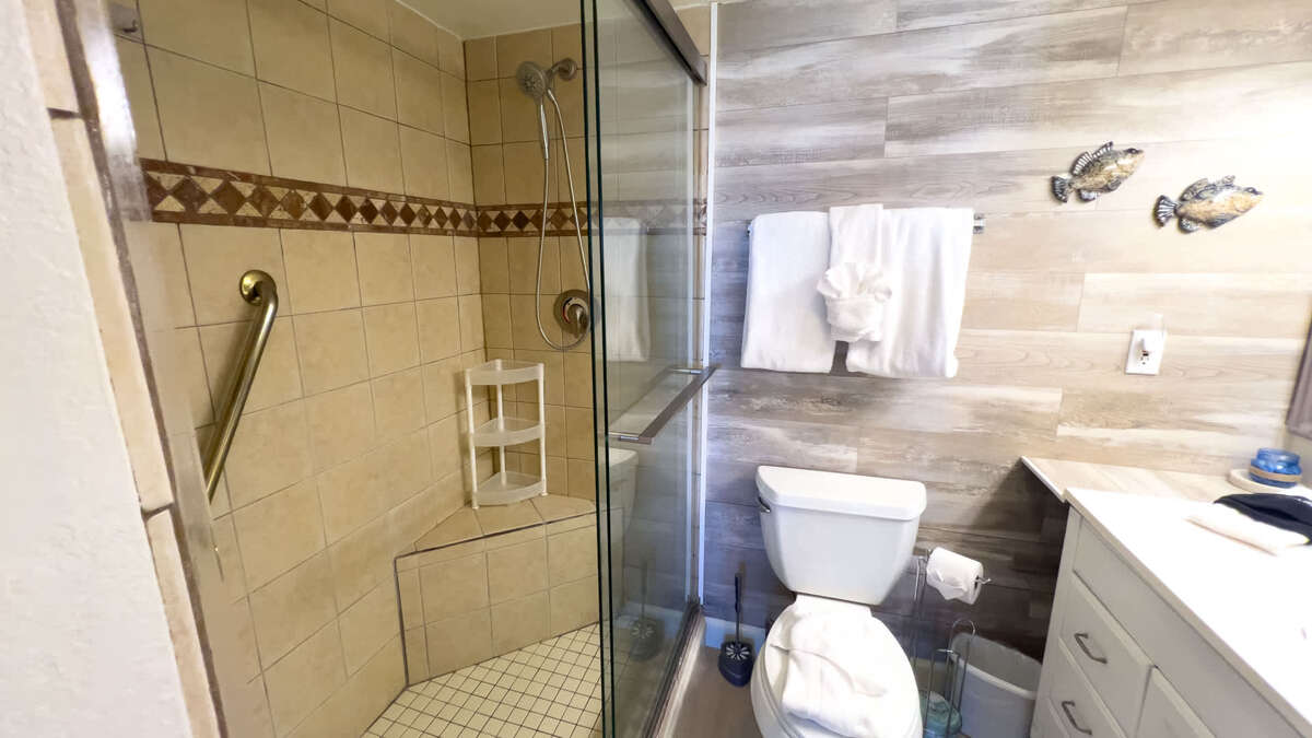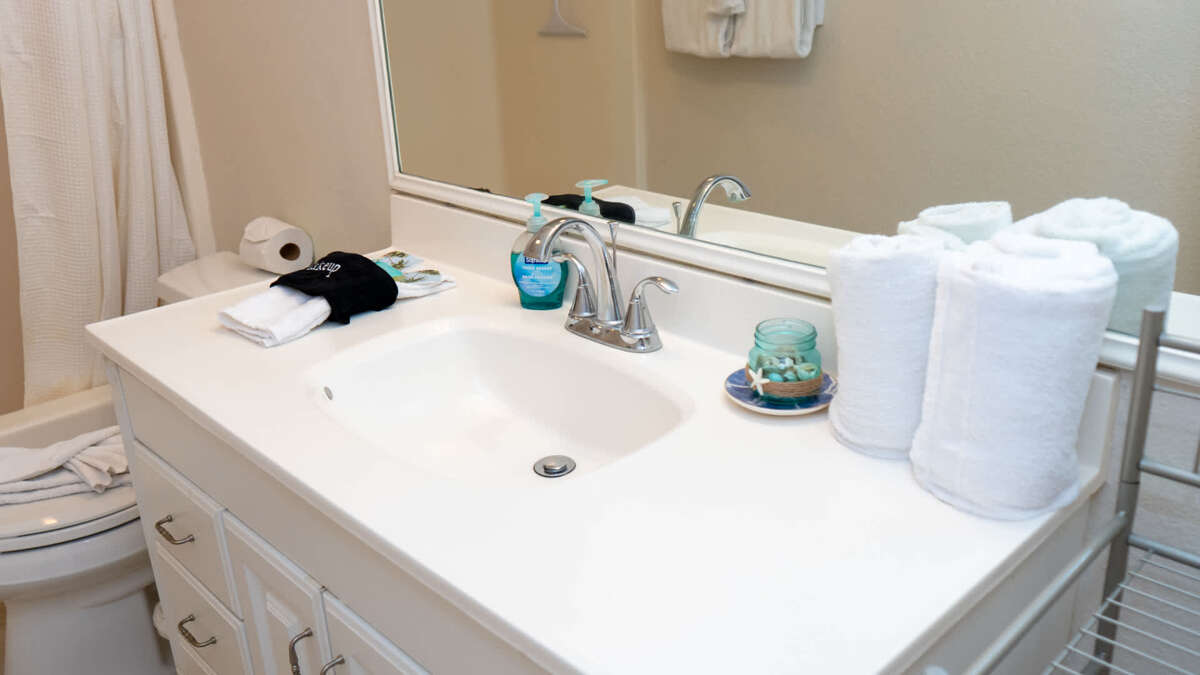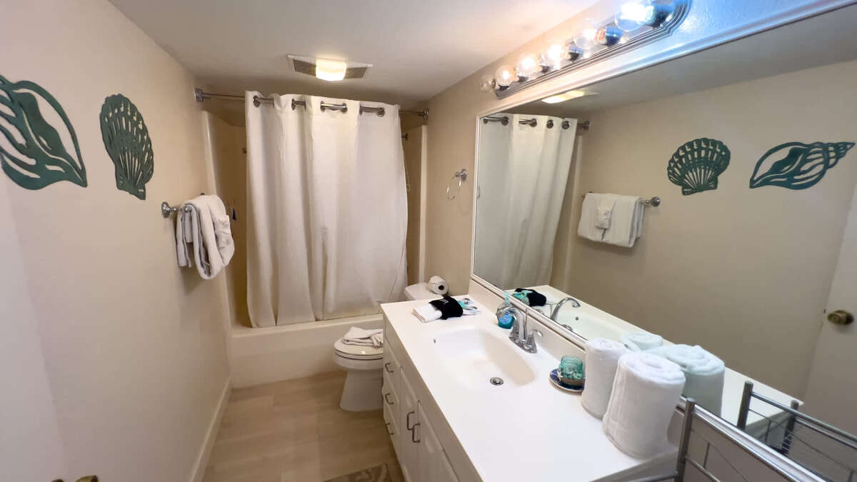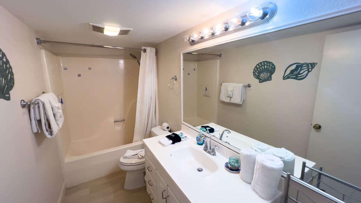 There is a full bathroom with a bathtub/shower combination. The Master bedroom has en suite bathroom with walk in shower & a flat screen in the bedroom. The maximum allowed at this condo is 6 people including children & infants.