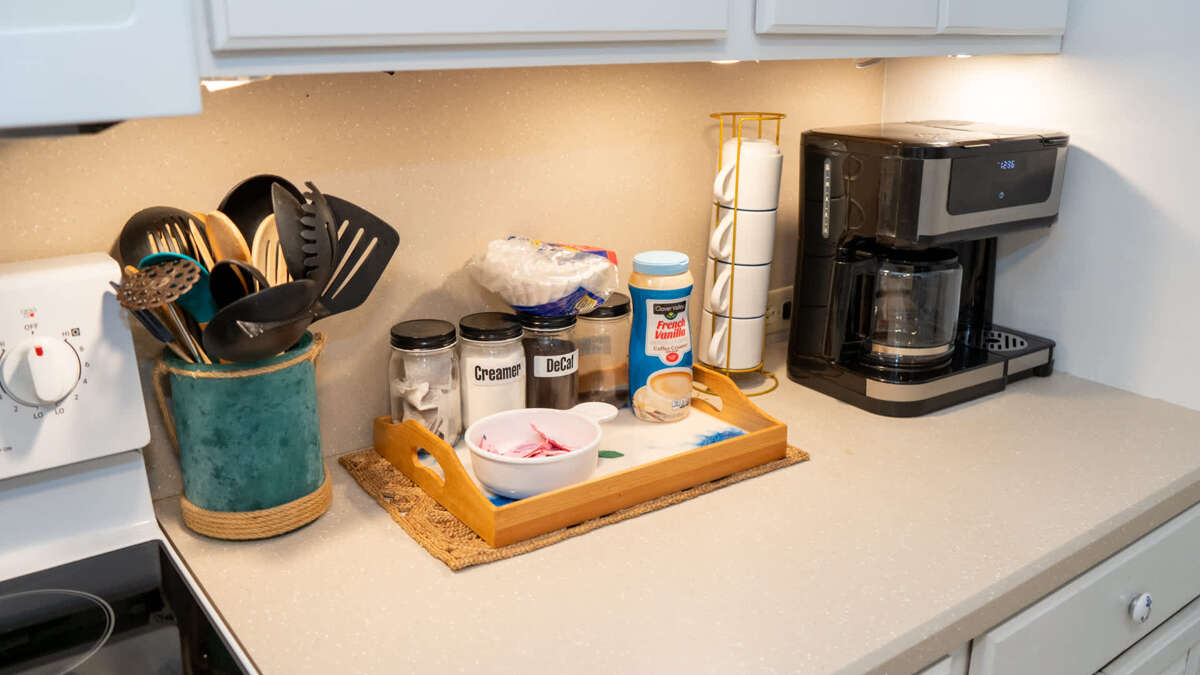 We do provide coffee, creamer, and sweetener + decaf + tea - as well as a starter pack of hand soaps, dish soap, trash bags, 1 roll of paper towels new and starters of toilet paper, non stick cooking spray as well as Salt & Pepper - though not unlimited and not replenished. All fresh towels and linens are also provided.