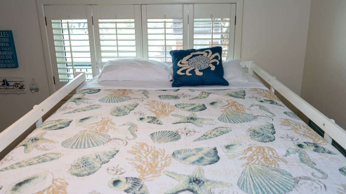 The master bedroom has a king bed, while the 2nd guest bedroom features a full over full bunk bed & we do provide an airbed as well with pump. Please do bring extra bedding if you plan on using the sleeper sofa or airbed - all other towels & linens are provided.