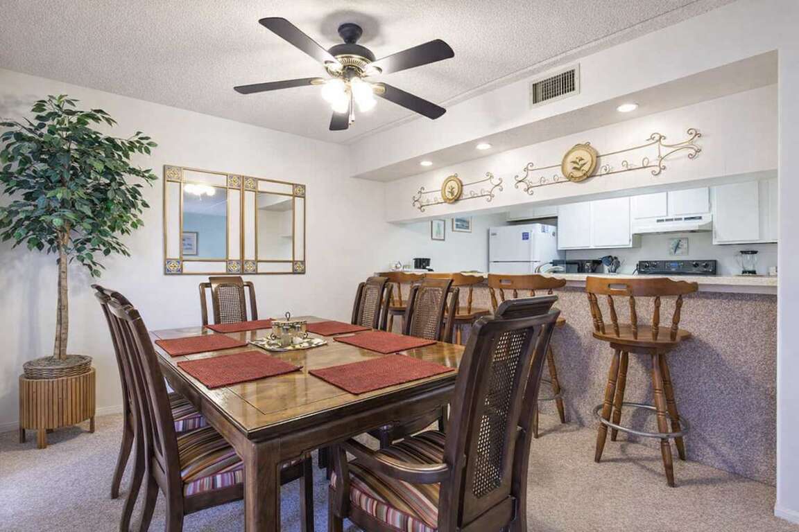 Please understand the property is not party oriented and on the quiet side. This is not a partially or fully remodeled space, however still very clean and functional. The patio overlooks the pool area + has an outdoor dining set for cards, margaritas, or munching down fajitas off the grill!