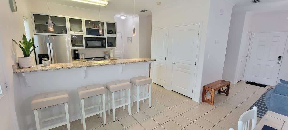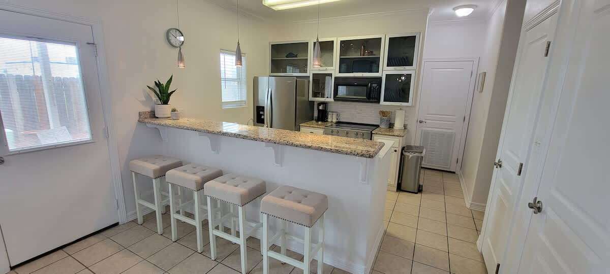 Please do note there is a flight of stairs for bedrooms - which we think is a super cool as it afford so much extra privacy if you load the kids downstairs for a slumber party, OR have those that want some hang out time with the kiddos upstairs. Very hard to find on South Padre Island