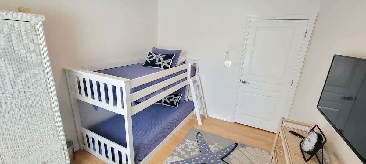*Beds: queen in master, double in 2nd, twin bunks in 3rd, sofa bed + airbed