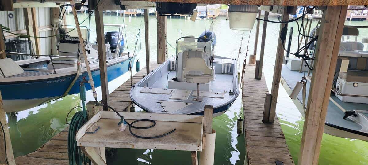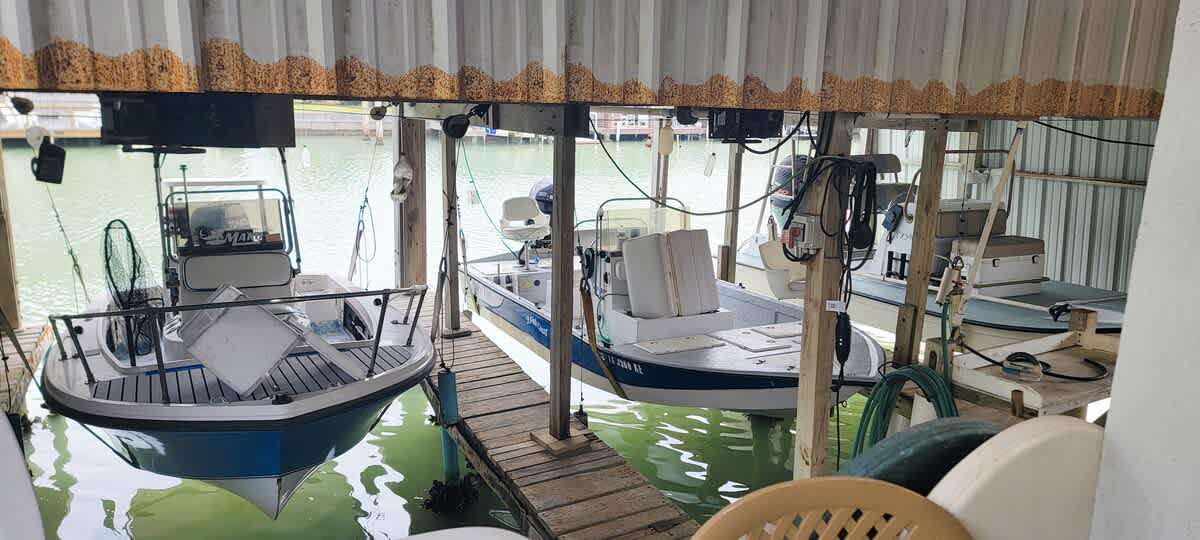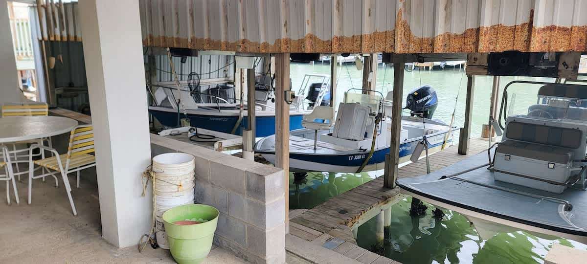 Below the deck is your dedicated boat slip - perfect for any shallow sport or bay fishing boat.