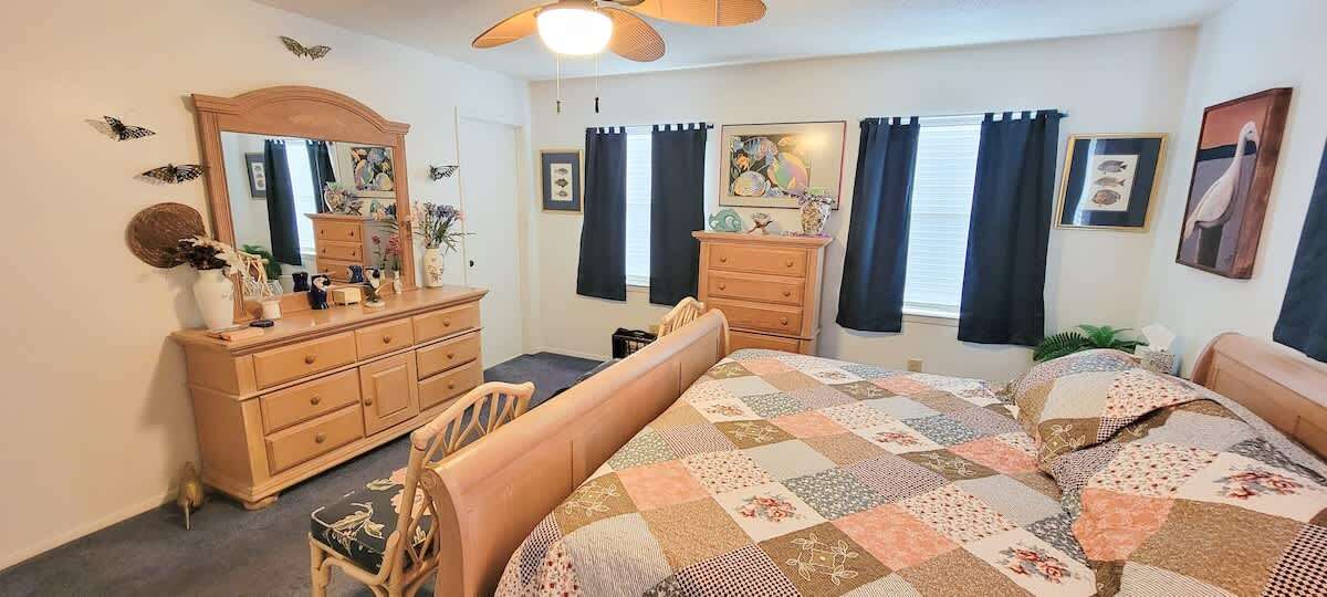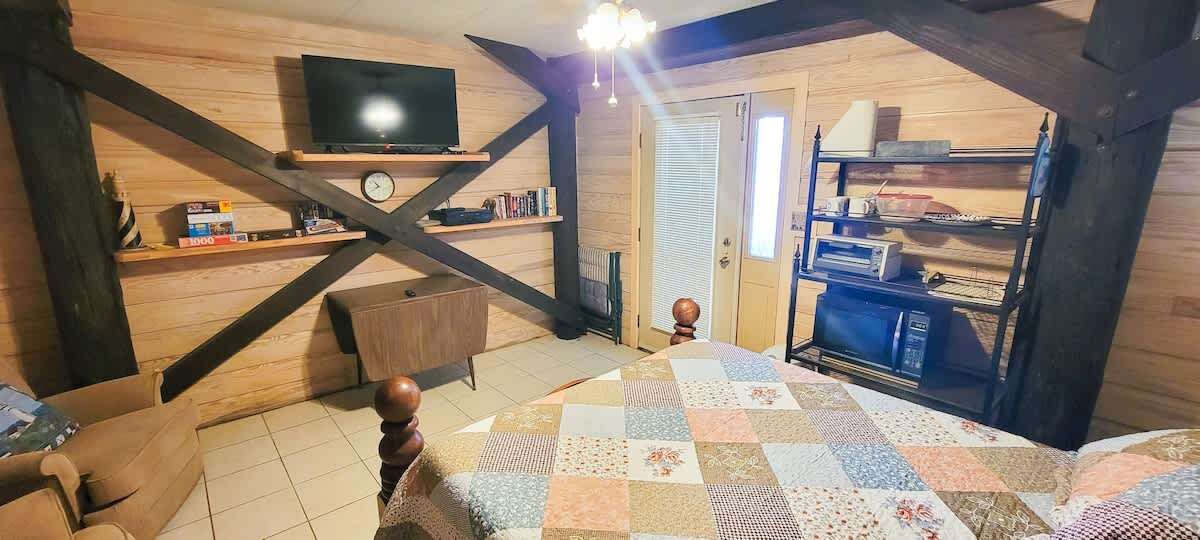 This traditional older home features 2 bedrooms / 2 full bathrooms upstairs, that includes a king bed in the master, a queen in the 2nd bedroom, adjacent to an open concept kitchen that opens to the dining room and living room area. The living area does have a Sleeper sofa as well as airbed, plus bring bedding if you plan on using, all linens & bedding provided for all other beds - all other beds have linens ready to go :)
