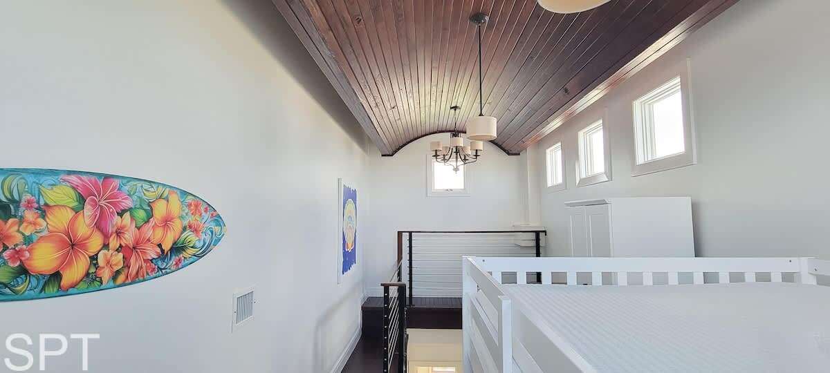 -The Surf Loft has a gangway stair to access. It has a full over full bunk with a trundle and sleeps five. -