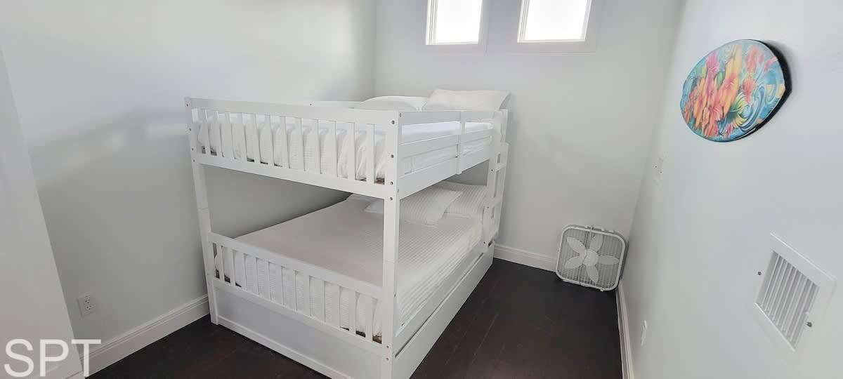 The Sea Turtle room is a full over full bunk with a twin trundle and a smart television. Sleeps 5
