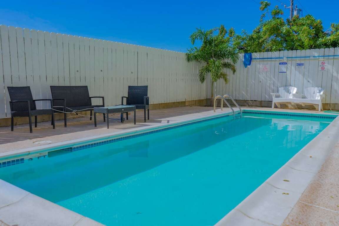 High 12 foot ceilings. Pool in back is private to the 4 condos here & very clean. 1 easy block walk to public beach access, walk to Clayton's Beach Bar, Kellys Irish Pub, Ted's for breakfast, Parrot Eyes for water sports or Fish Tacos, BurgerFi for organic cheeseburgers.