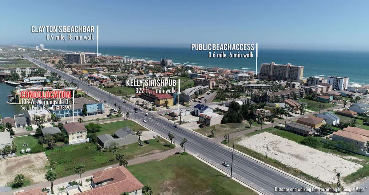 The beach is only a block away. Clayton's Beach Bar is less than 1 mile. Ted's (a cafe) is about 150 yards away killer breakfast tacos and pecan pancakes. Parrot Eyes has stand up paddle board rentals, parasailing & jet ski rentals as well as solid fish tacos & is just 170 yards away. Burgerfi for teens is grass fed organic burgers 150 to 200 yards away.