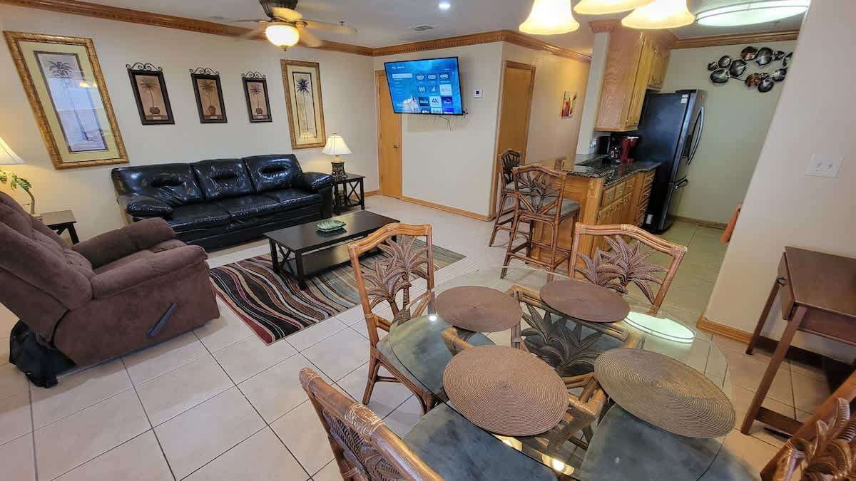 This 3 plex has 2 other condos 1 upstairs next door that also allows 8 people in a 2 bedrooms and 1 downstairs that that allows 10 guests as a three bedroom condo & all may be booked together which makes it massive in total. Understand booking all 3 is rarely possible less than 30 days in advance - book early to get entire complex to allow up to 26 guests