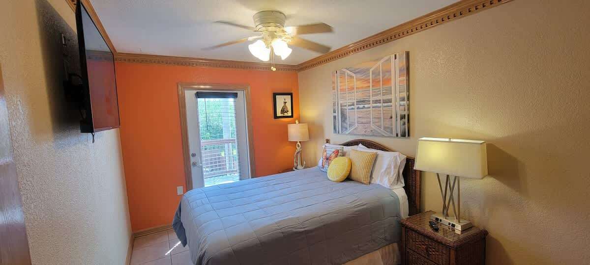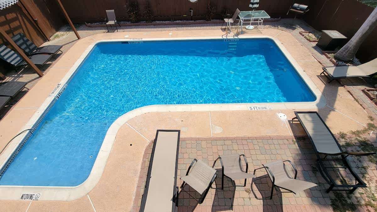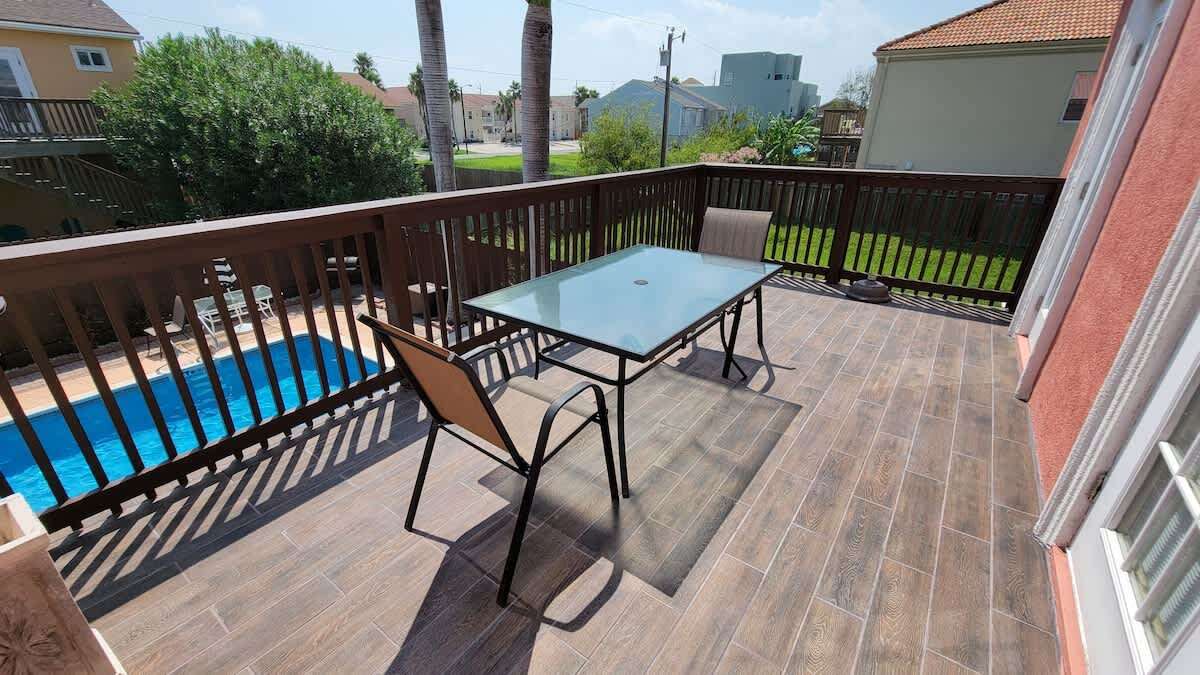 This second floor condo has all hard tile floors and feels very cool inside after a long day at the beach. Guests appreciate the cool vibe colors inside. The onsite pool in the backyard is a great spot for the kids to wear out at & sleep well. This pool is shared with the other 2 condos here & has some shade & chairs.
