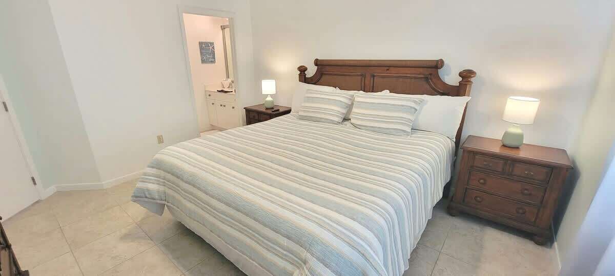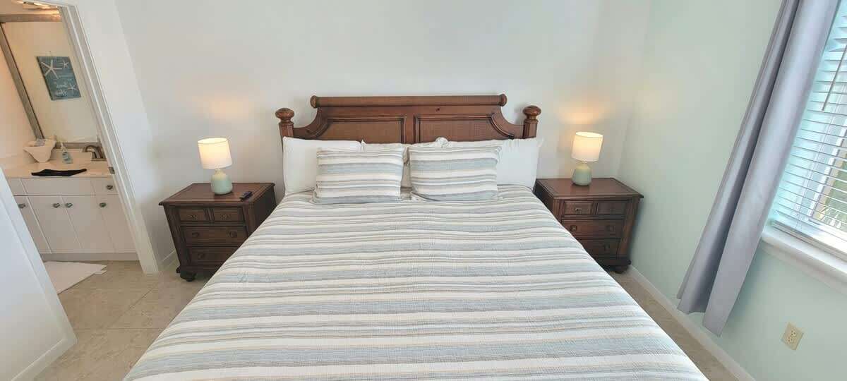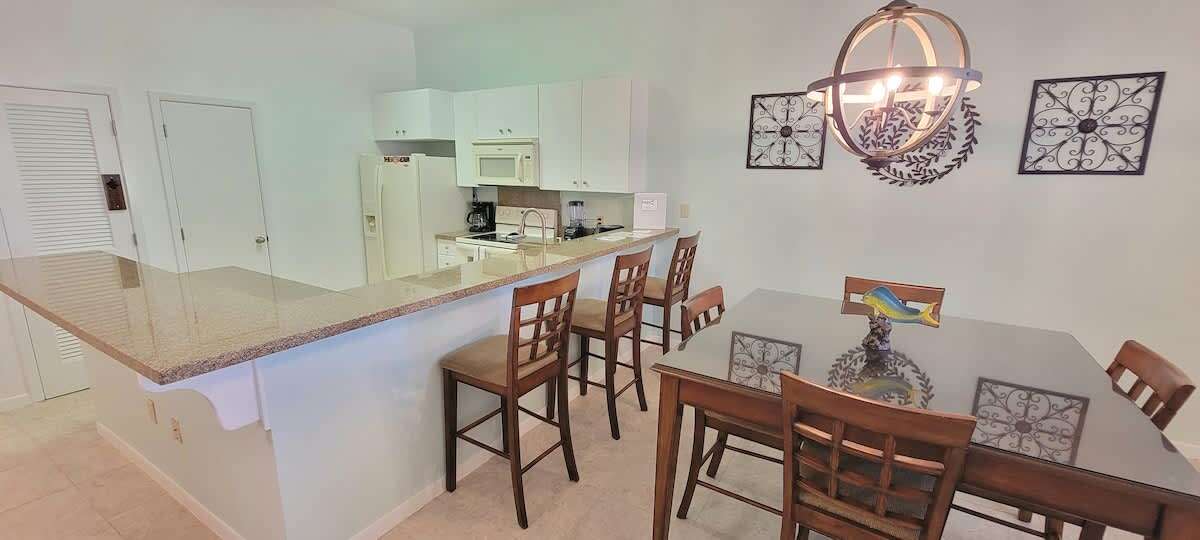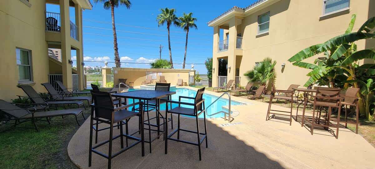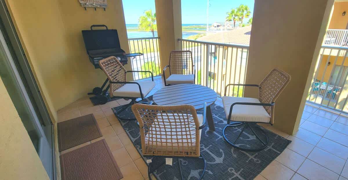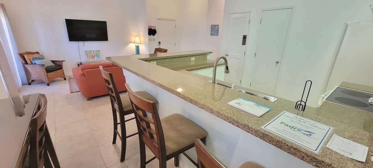 The condo has all tile floors, higher ceilings, and an eat in fully equipped kitchen perfect for breakfast tacos or serving up some margaritas for the patio with a Blackstone BBQ grill. A convenient washer & dryer set up is great for after beach cleanup or traveling home with all clean clothes