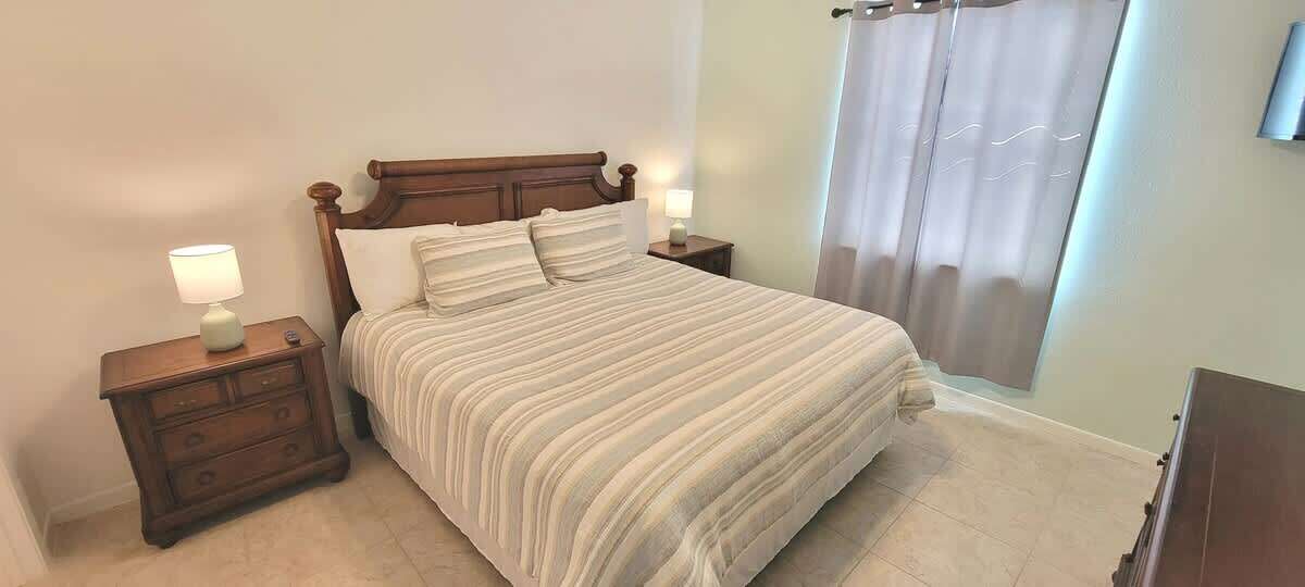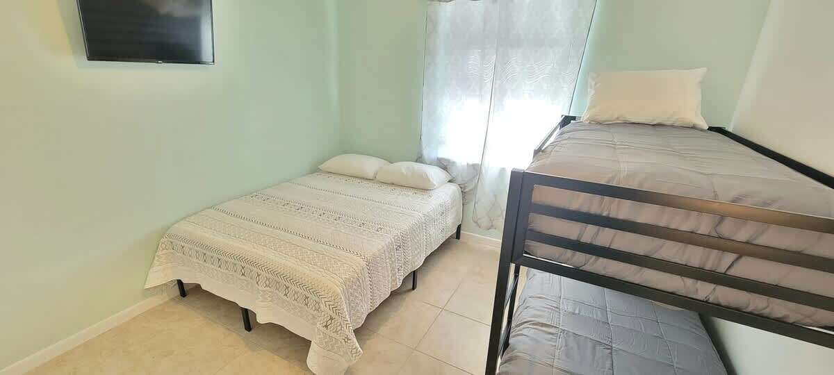 For those that have to work the counter works well, along with high speed wifi. The bedding is currently a King bed in master, 2 single beds in 2nd bedroom as bunks, a queen bed, a couch that does not pull out, and a double sized airbed & pump we provide (bring extra bedding if you plan on using), this condo equipped with 3 smart TV's