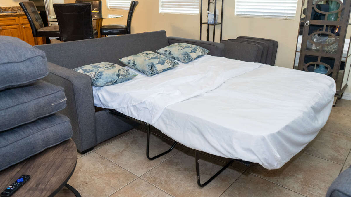 Additional bedding includes one pull out couch sofa bed that is a small full bed, as well as an airbed and pump. Please bring additional bedding if you plan on using the sofa sleeper and/or airbed