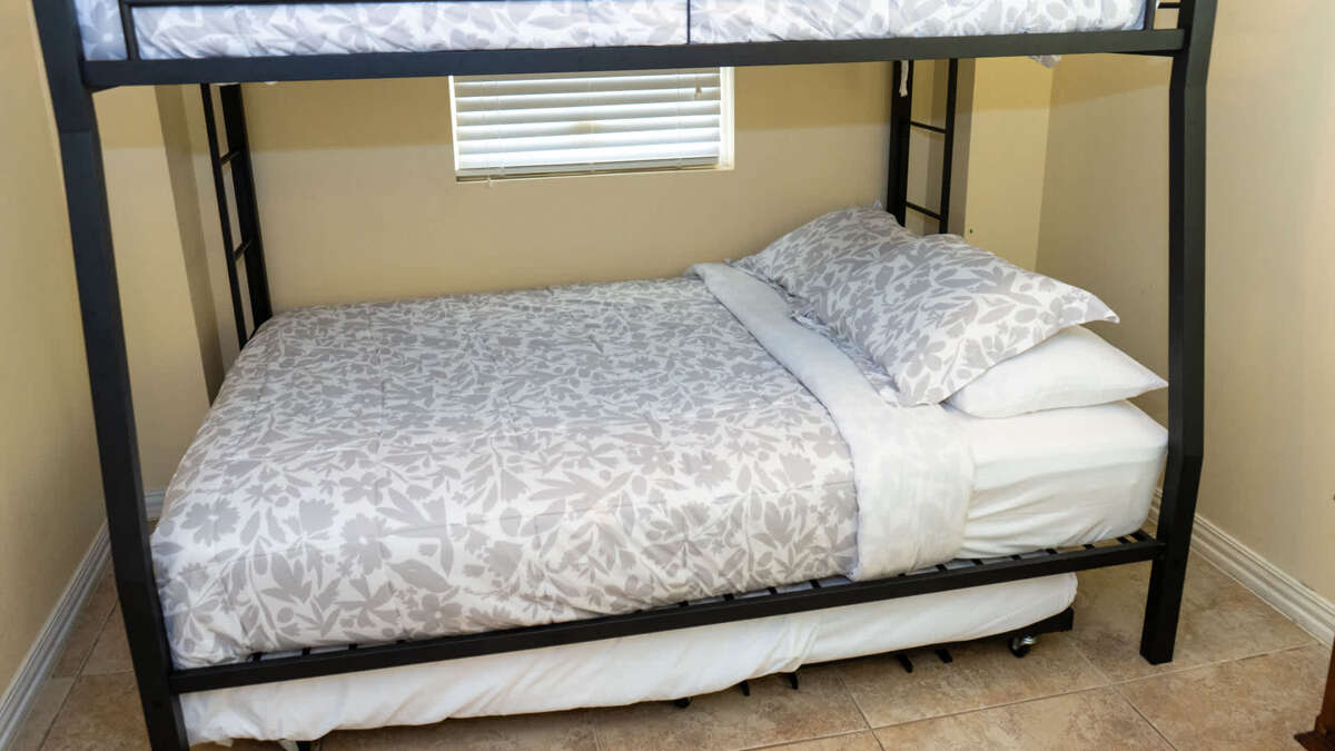 Downstairs, you'll find the remaining two bedrooms each with a full size beds and flat screen TV's. By May 15th, we will be removing one of the full sized bed and an adult sized bunk bed installed brand new with 2 full sized beds.