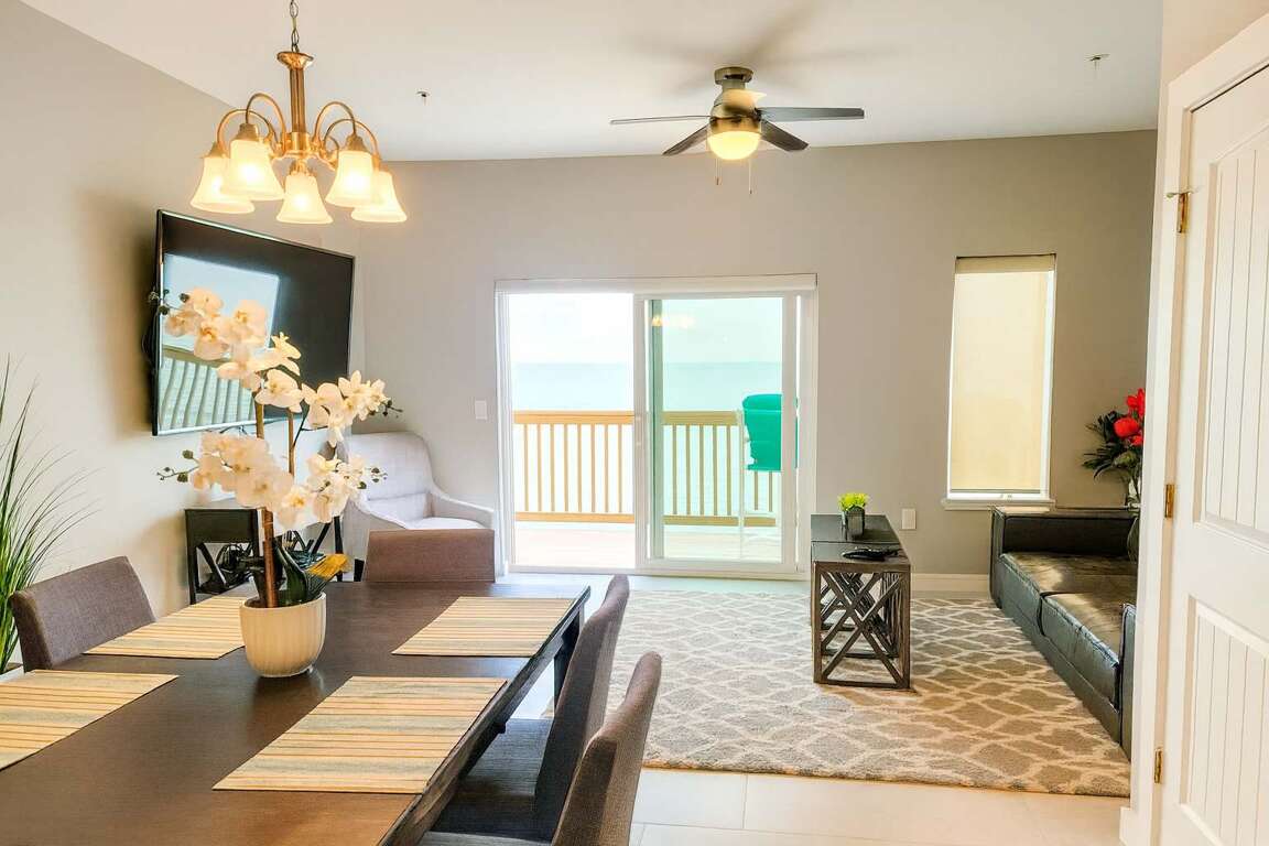 You will see South Padre Island as you walk thru the front door, with spectacular views from both of the over water decks. At night, the sunsets here = incredible, along with weekend fireworks in the summer. While this Luxe townhome has no pool, the beaches of South Padre Island are just across the causeway bridge in a matter of minutes whether you drive or taka cheap cap there are more than a dozen public beach access points.
