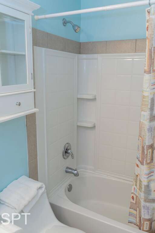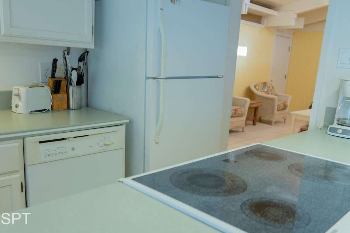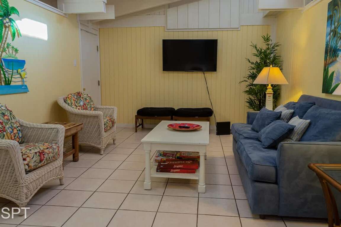The large eat-in kitchen has all pots/pans/dishes, etc The living room is spacious and great for relaxing after a beach day. The third bedroom is just right for four kids, with two trundle beds and singles. The other two bedrooms offer queen and full beds for couples.