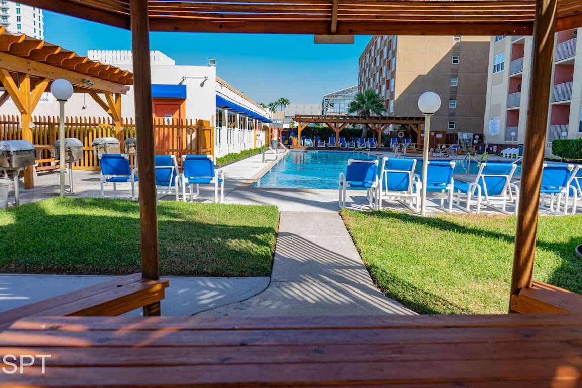 This Condo offers a stylish place to stay in South Padre Island, TX with a stunning array of amenities in walking distance to the beach alongside a community pool.