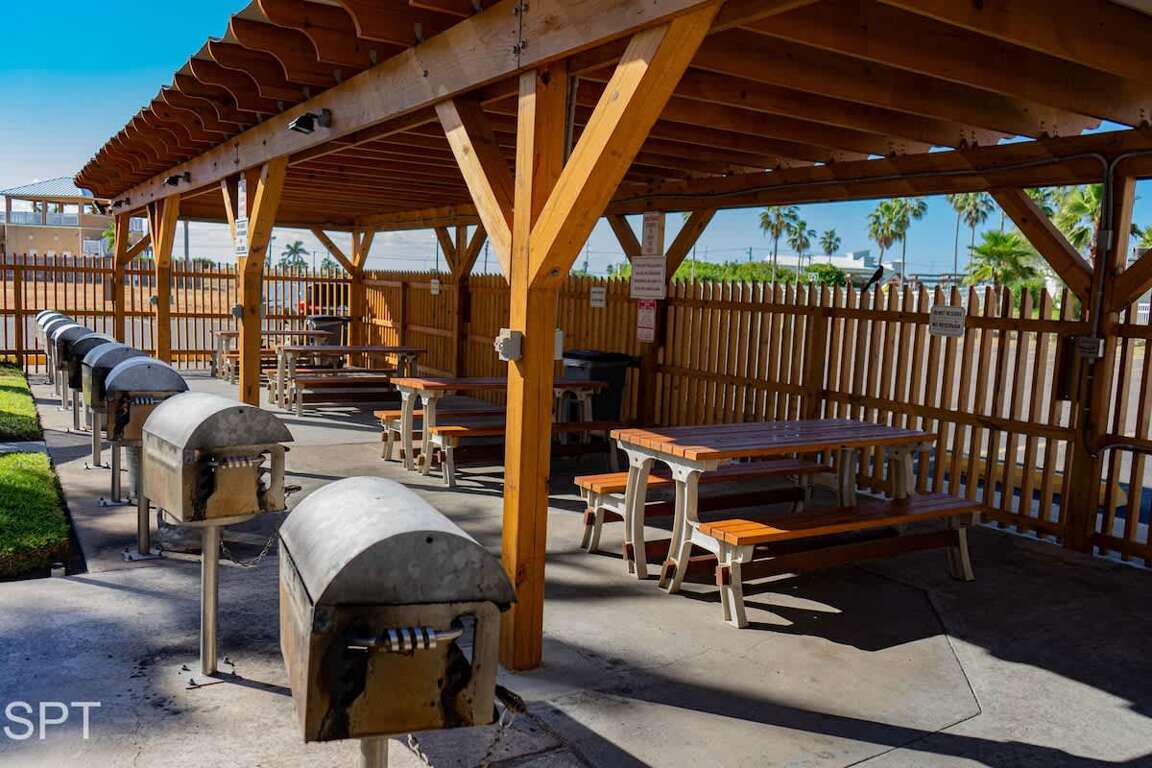 The pool area here is a real treat as quite large & resort like, though not heated the Texas Sized 10 person jacuzzi is. There are also about 8 community use BBQ pits (bring charcoal) as well as patio tables for BBQs poolside – something very hard to find on the Island.