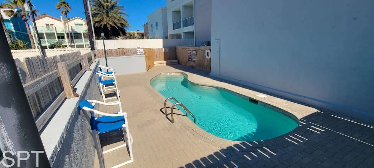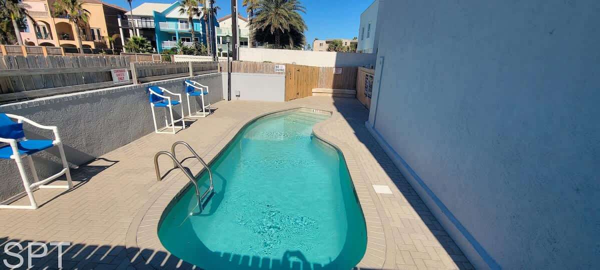 There is a community use pool, but it is not heated, please note. If you want a beach umbrella or pop up set up for you, there is a guy that does it for about $50 USD per day. Remember, South Padre Island is open container, cooler friendly on the beach just no glass. BBQing is allowed on the beach, but not at this complex, patio, pool, nor parking area,