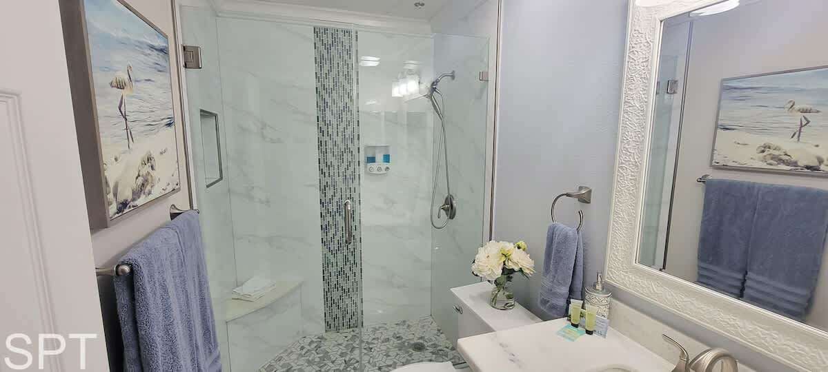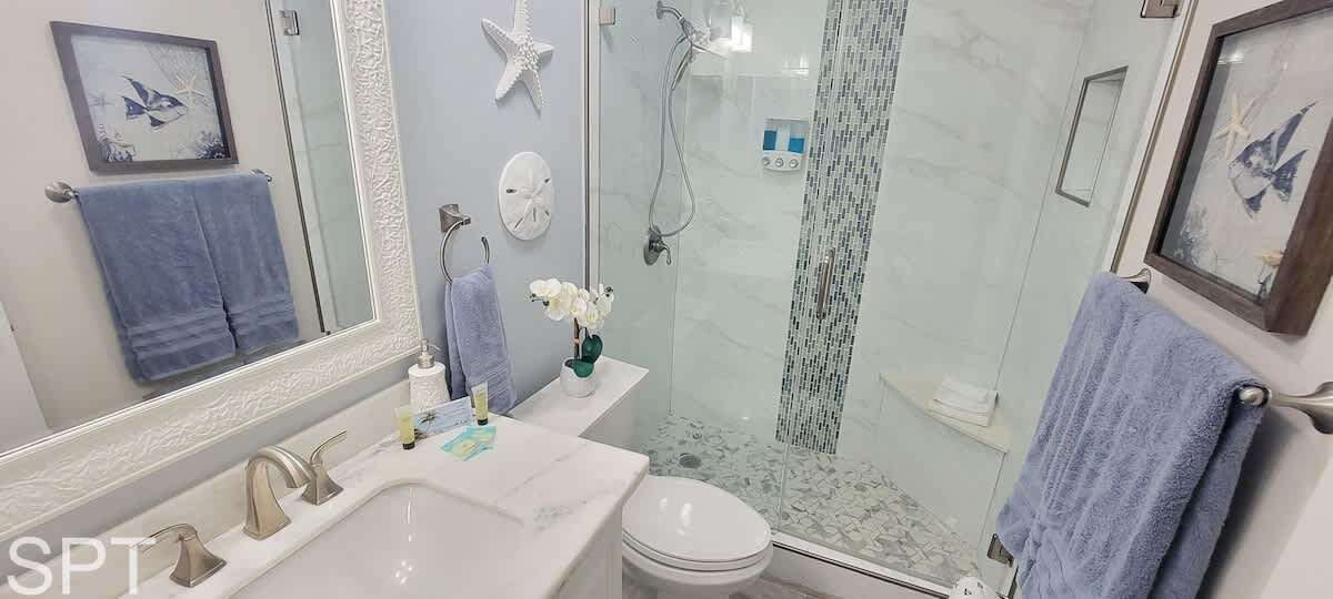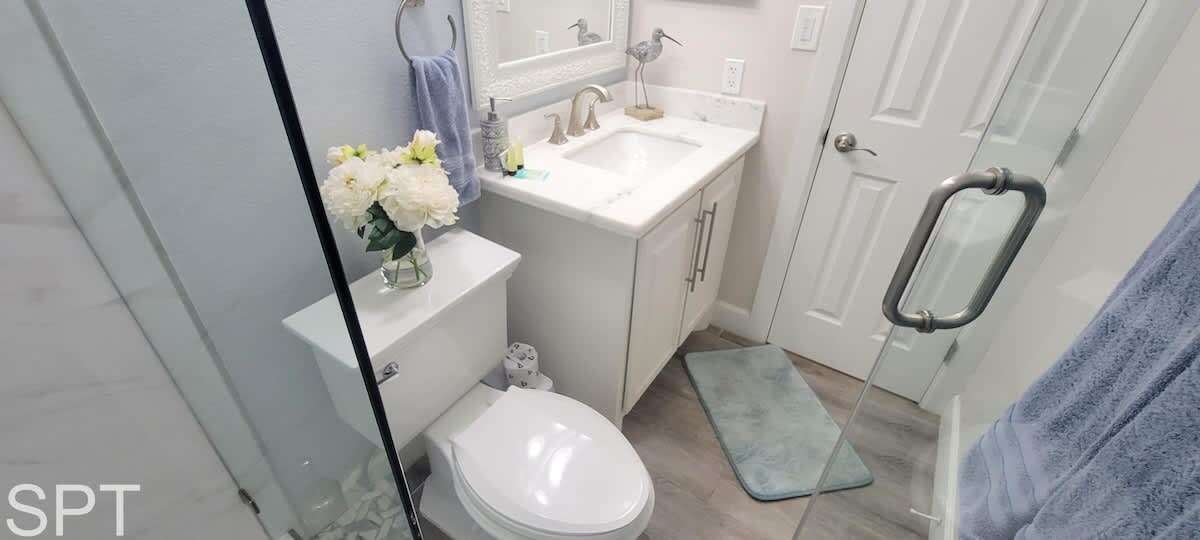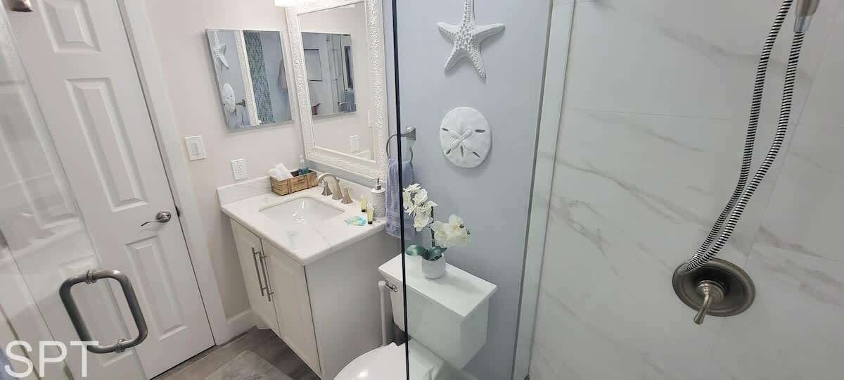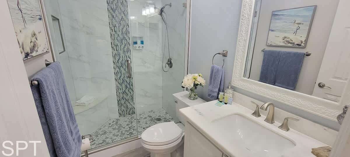 Coronado #302 is a true full remodel with white quartz counters & all new tile walk in showers. Entire condo is fresh as of Dec 1, 2024, new everything. Located at 5701 Gulf Blvd, Coronado condos are directly across the street from Beach Access #22, worry not about lugging your beach gear & kiddos very far.
