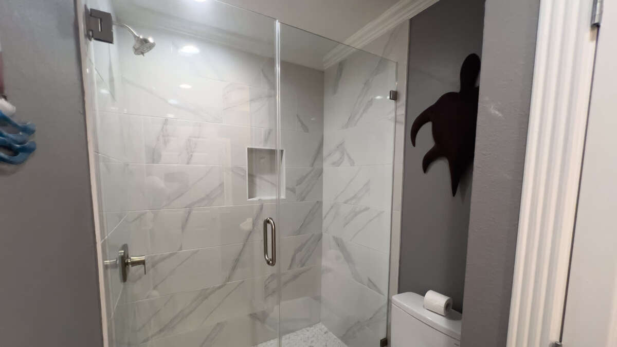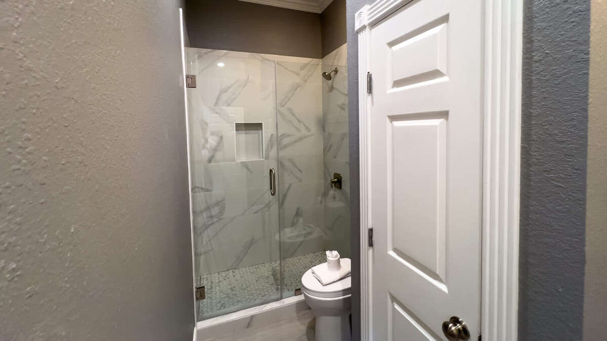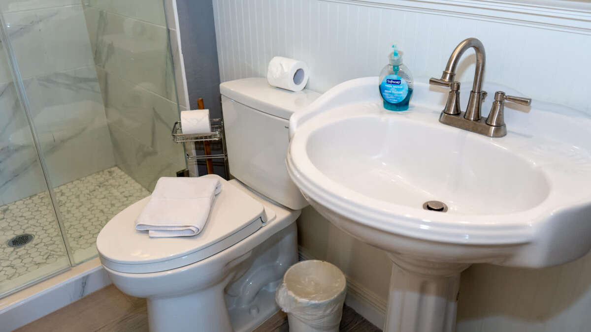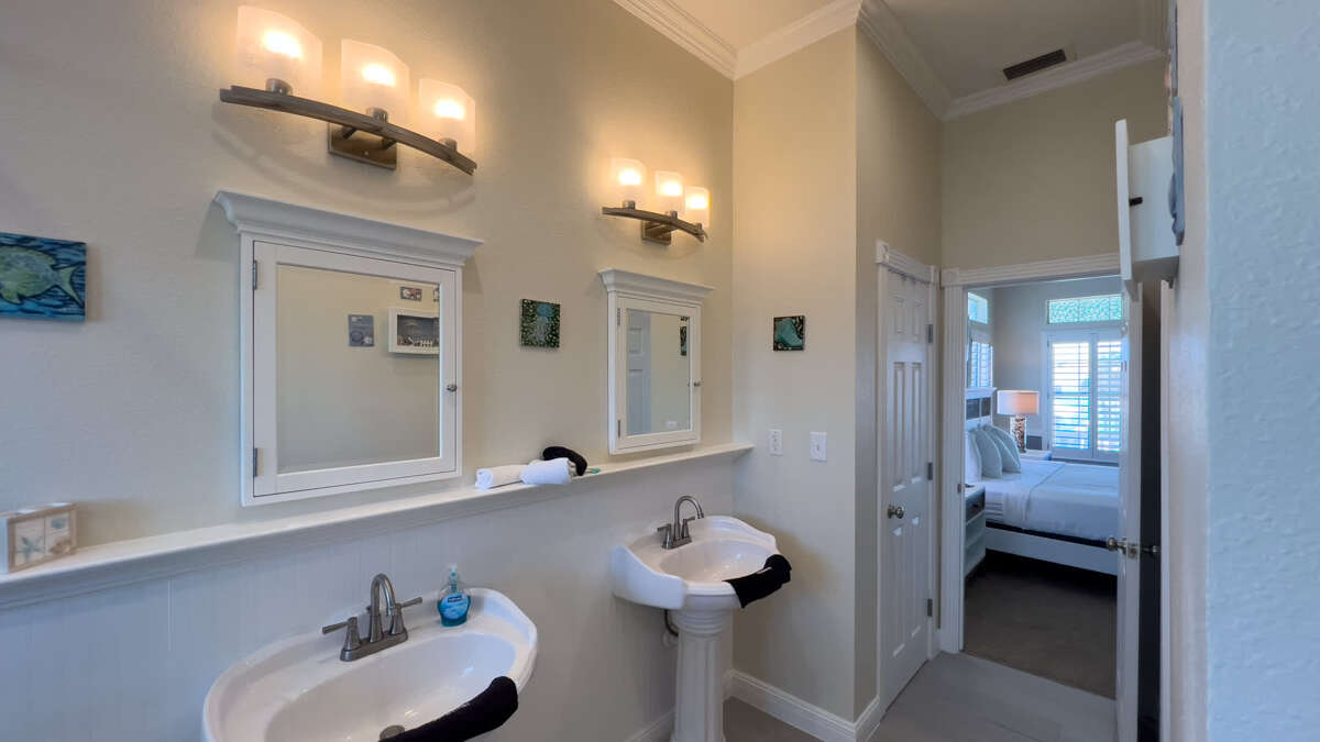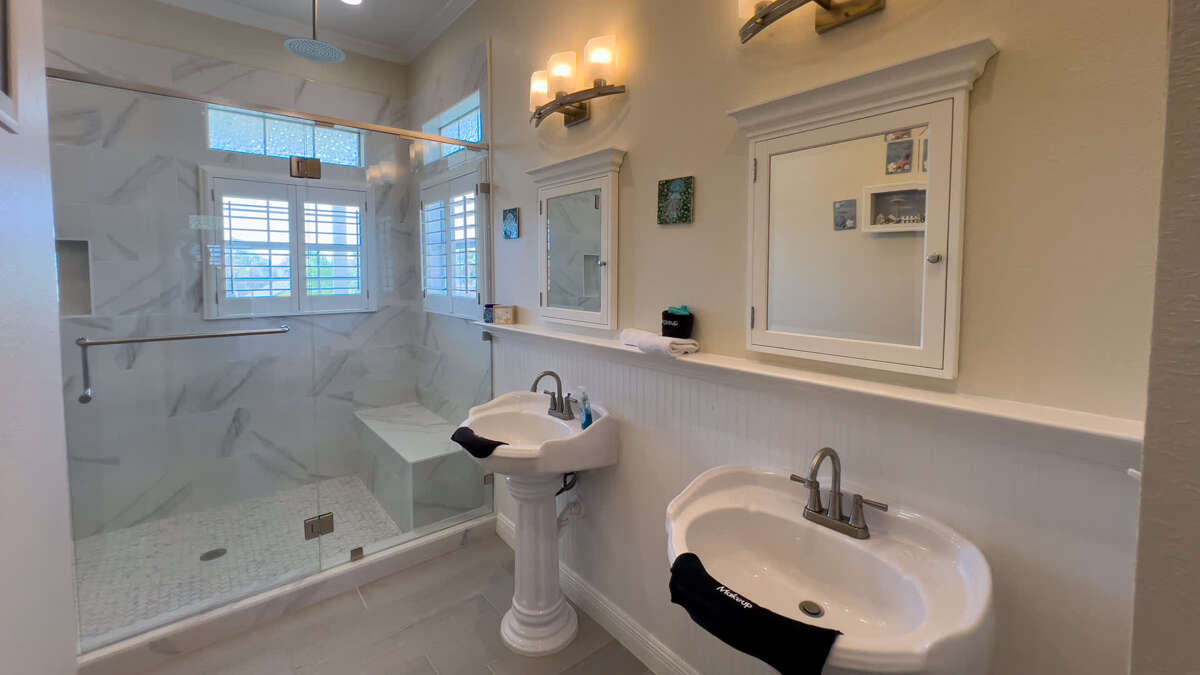 Bathroom 3 (full bath): 1st floor in hallway, each access from pool and bunk room