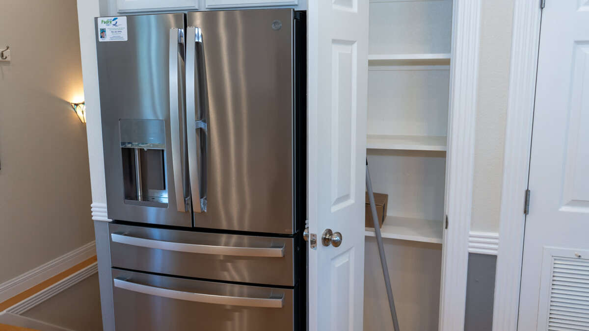There is a bonus room on ground floor at the back of the property off the pool that is like a small mini suite with a kitchen sink, dishwasher, microwave, flat screen TV, and a table with chairs plus a pull out couch for extra sleeping space and/or privacy. This room is great as a 2nd kitchen off the pool plus dishwasher if you BBQ in pool area as well as the mini fridge for beverages too.