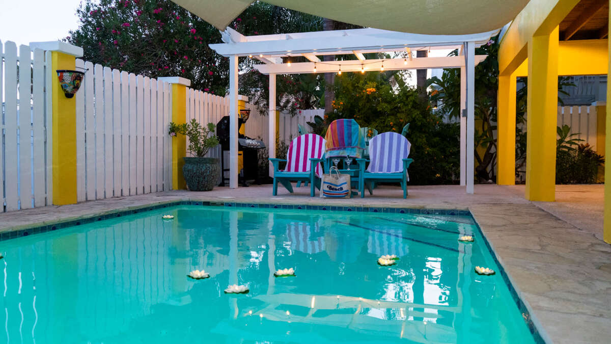 Welcome to our island home! Ideally located a half block from the beach and walking distance to restaurants, shops, and golf cart and other rentals. Both the interior and exterior of this home have been carefully thought out for your vacation! Huge pool and hot tub, patio and pool furniture, and a hammock in the backyard. Plenty of beds, comfortable furniture, new central A/C, and games (pool table, foosball, air hockey/ping pong/dining table) inside the home and the garage game room.