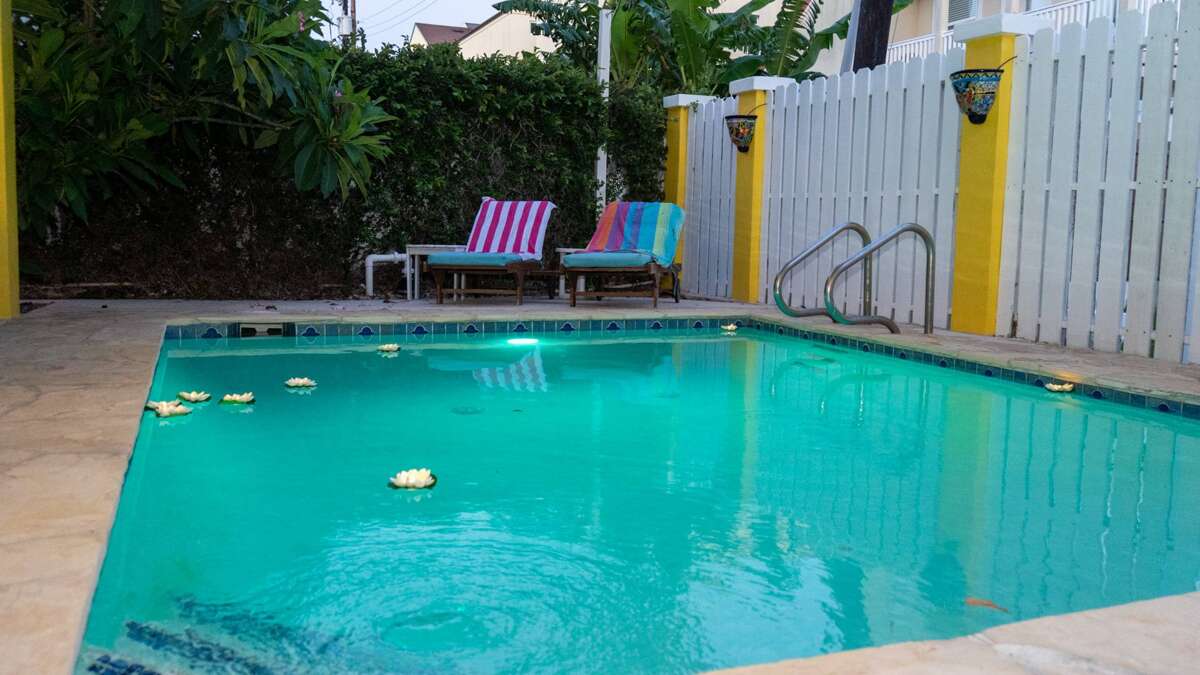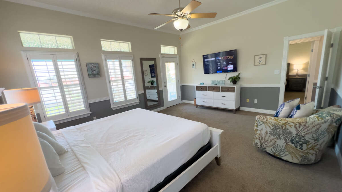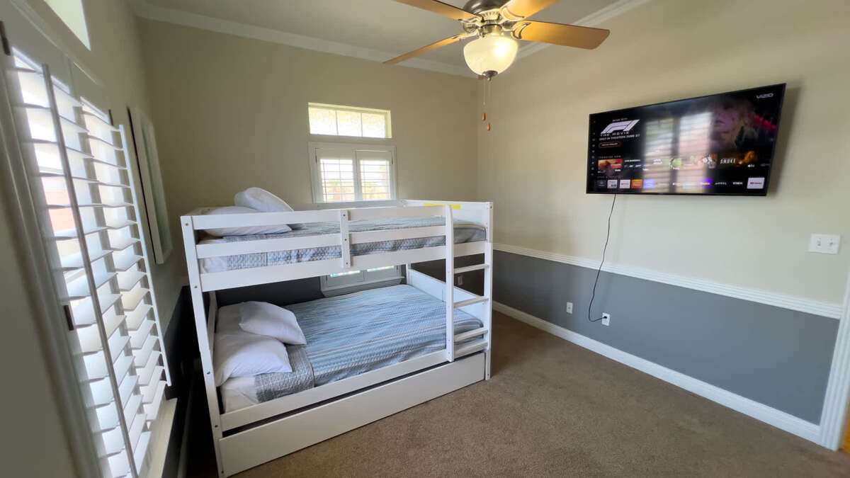 This home has 3 bedrooms on the top floor, with one bonus room on ground floor that opens to the pool with additional bedding and mini fridge for ease of having fun by the pool