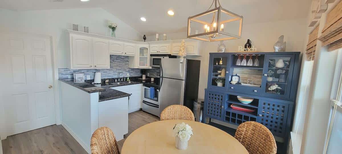 *The open concept kitchen is remodeled with Granite, stainless, and fully equipped with all pots, pans, dishes, etc to enjoy convenient & lower cost home cooked meals.