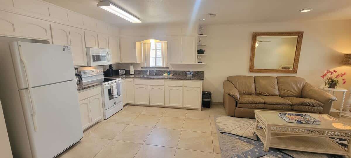 When you enter the space you will notice all tiles floors, a completely open kitchen to the living and dining room areas and ample space. The kitchen is fully equipped with all appliances, pots, pans, cookware, dishes etc to save time & money and prepare home cooked meals.