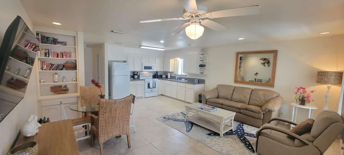 Thank you for taking a look at our condo near the beach at 108 E Campeche unit #12. This condo is larger than average for a 2 bedroom, all ground level with no stairs. There are two dedicated parking spaced in front (back to front) as well.