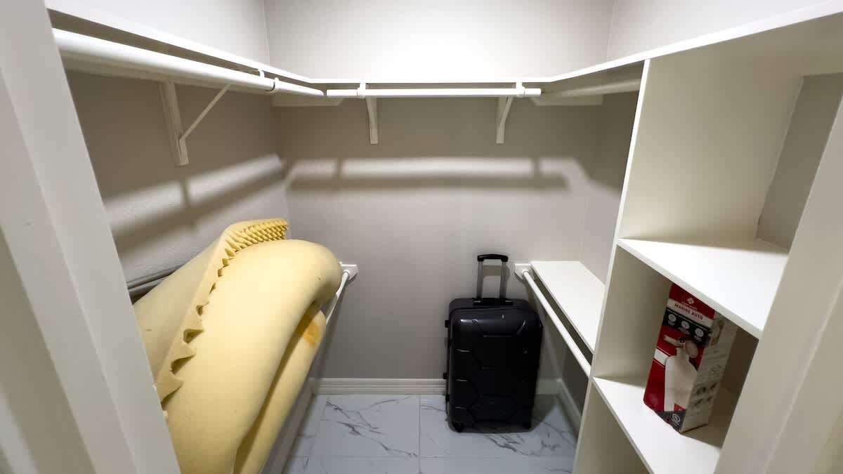 *4 additional fold down futons (not shown but now installed) serving as a Twin XL bed each