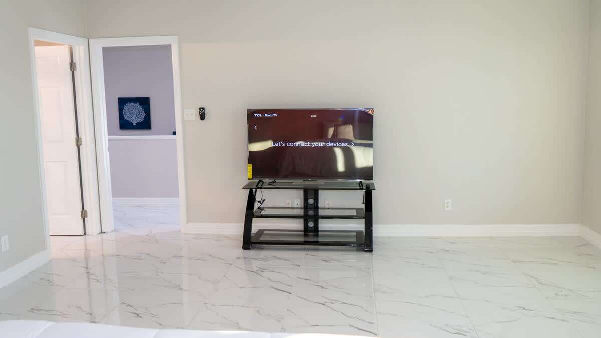 High speed internet/wifi is included though Spectrum is the sole provider and not always flawless. The Smart TV you can watch using whatever your favorite app is – we do not provide cable TV.