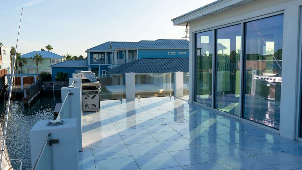 The home has a built in bulkhead (serves as “dock” ) as well as multiple decks on the 2nd levels. Enjoy spectacular views of the island especially at night, all the boats under the bridge or fireworks on summer weekends off the Island.