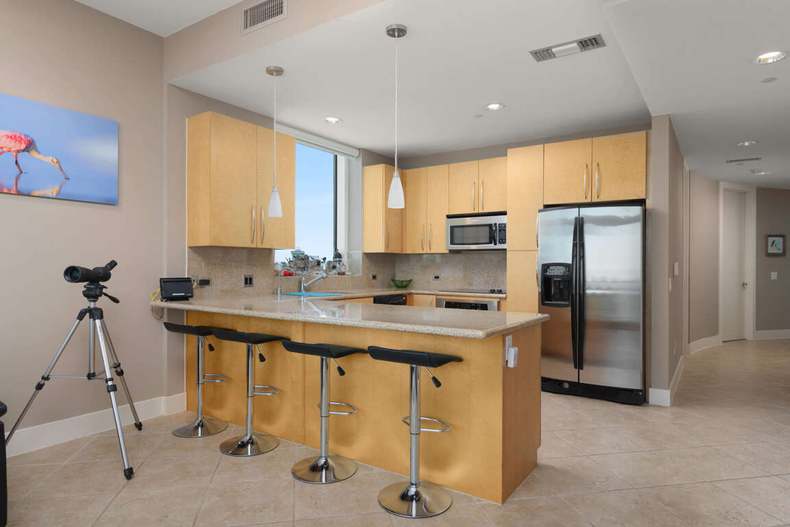 Units at higher floors have balconies that are not very useable due to high winds which this unit enjoys a perfect level for views galore and semi blocked wind. If you want to see a SpaceX launch, unlike many other units in this complex advertised this condo is in the right tower at the right height for a perfect experience. The views of the Island at night are truly breathtaking.