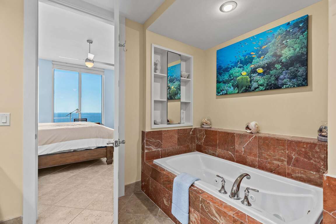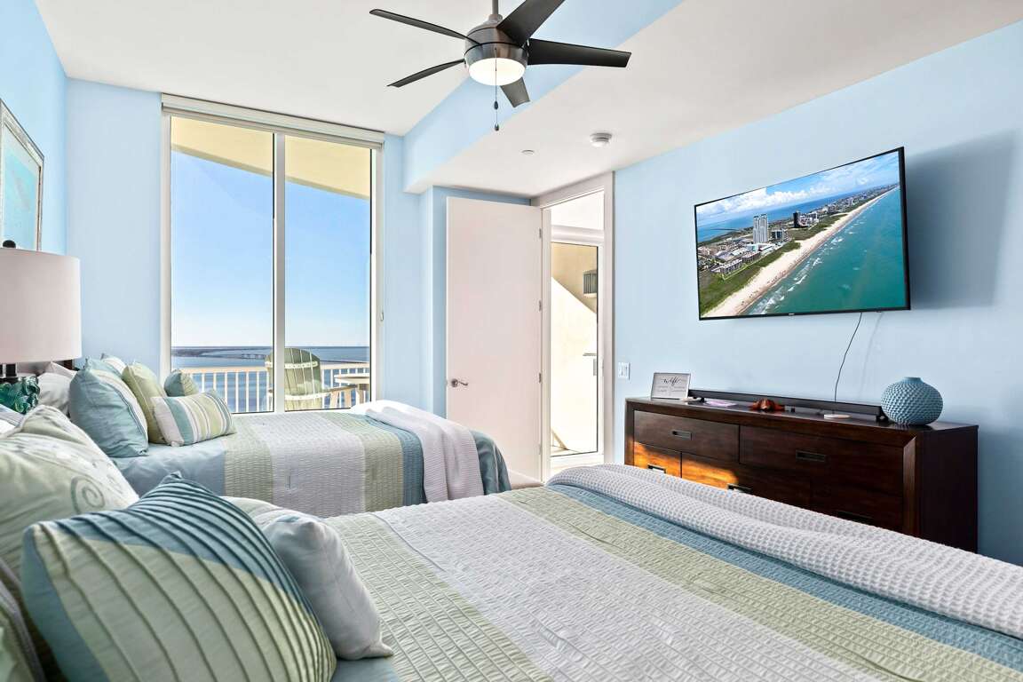 This exceptional 3-bedroom condo on the 26th floor of Sapphire Beach offers unmatched views in South Padre Island, TX. With amenities like a community pool, hot tub, and Wi-Fi, it's an ideal stay.