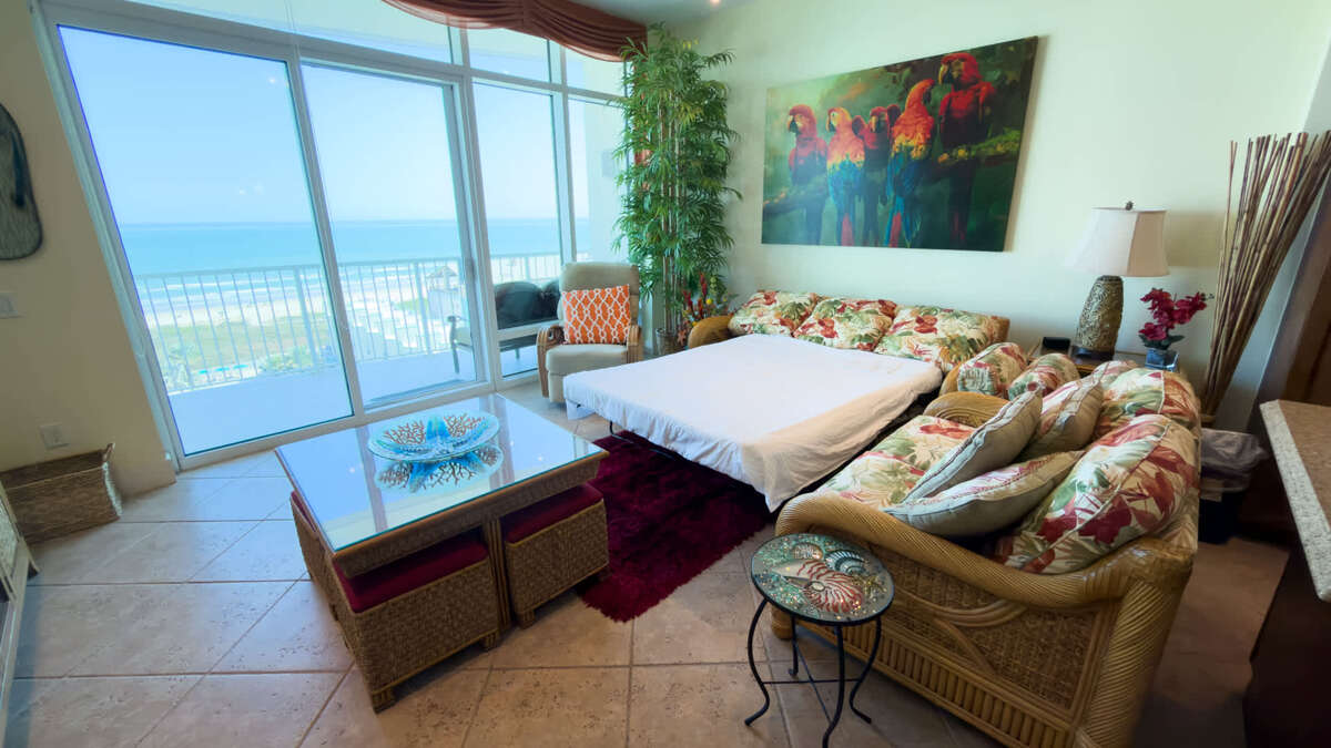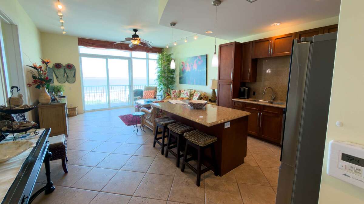 This Sapphire features a private, ocean front patio / balcony where you and your guests can enjoy the sights and sounds of the beautiful Gulf or enjoy a morning cup of java, plus a second exterior patio equipped with stunning sunsets & even greater views of the Laguna Madre Bay waters, the Queen Isabella Causeway Bridge, or weekend fireworks seasonally from Louies Backyard you can privately view