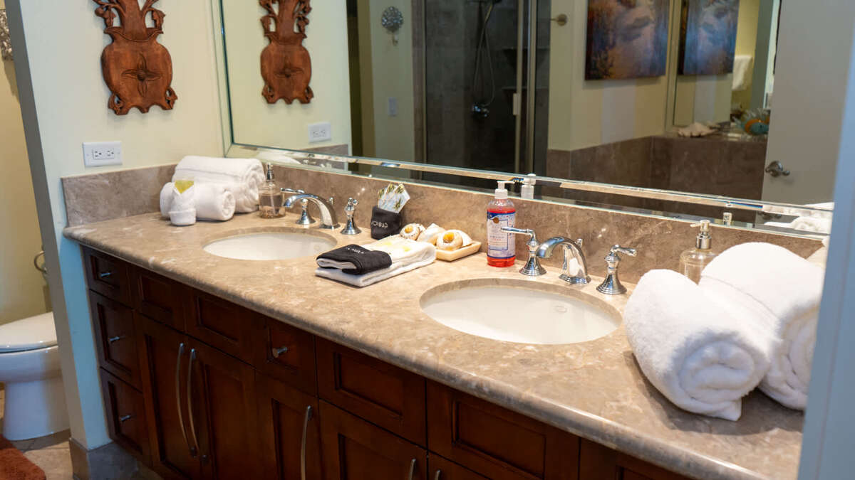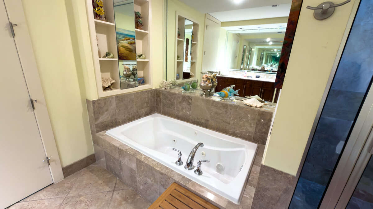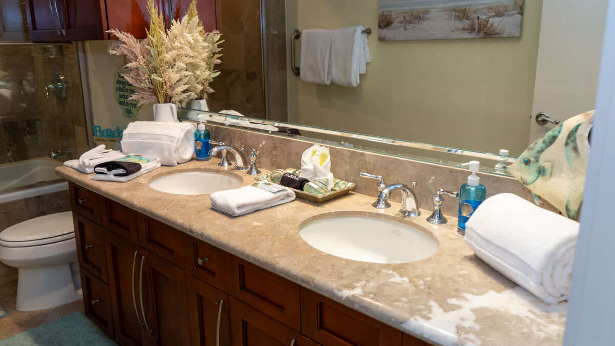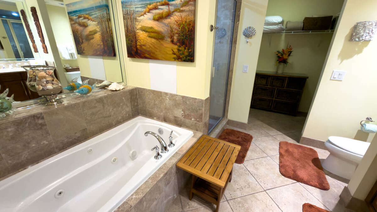 Offering greater privacy than nearly any other beachfront luxury accommodations on South Padre Island, you will find that the master bedroom features a spacious king size bed with a large en suite full bathroom featuring a soaker jetted tub and stand alone shower with dual sinks. The huge walk in closet could honestly be it’s own bedroom it is so big!.