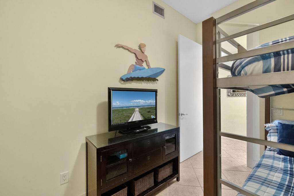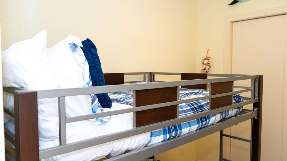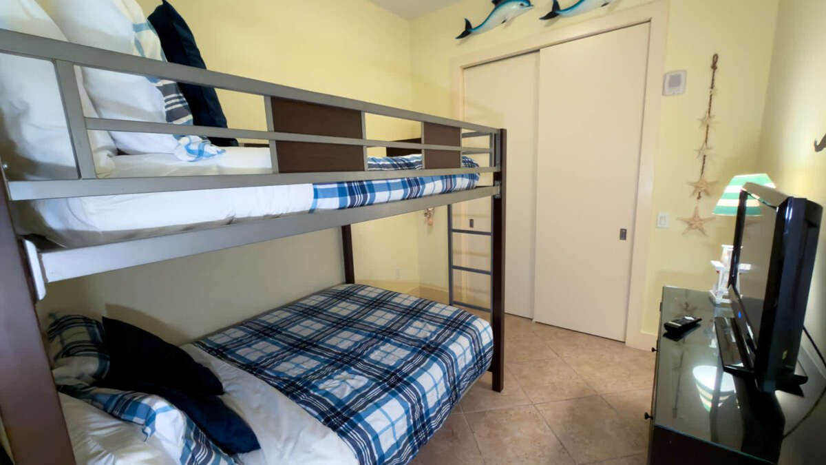 The second bedroom is great for two additional adult couples or teens features two queen sized beds, while the third bedroom features a bunk bed with two full sized mattress kiddos will love as their bunkroom yet still roomy enough if an adult has to take a bottom bunk