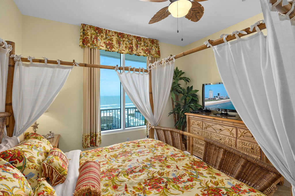 This Sapphire features a private, ocean front patio / balcony where you and your guests can enjoy the sights and sounds of the beautiful Gulf or enjoy a morning cup of java, plus a second exterior patio equipped with an electric built in BBQ grill stunning sunsets & even greater views of the Laguna Madre Bay waters, the Queen Isabella Causeway Bridge, or weekend fireworks seasonally from Louies Backyard you can privately view