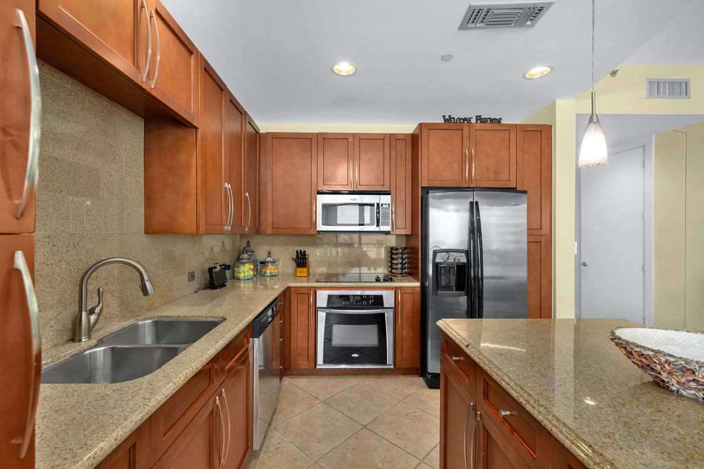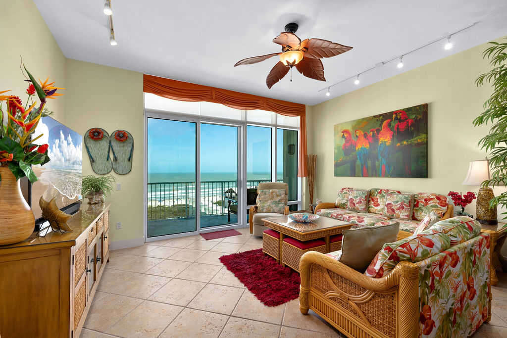 This space is ready to meet all of your families needs for a truly great vacation experience. Unit 907 has 3 bedrooms and 2 full bathrooms with a true open concept kitchen the flows into the living room drawing you to the sweeping view of the ocean & beach off your own private patio. The entire space has very high ceilings adding to an oversized feel you will enjoy