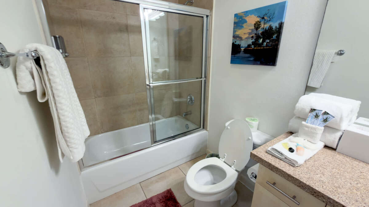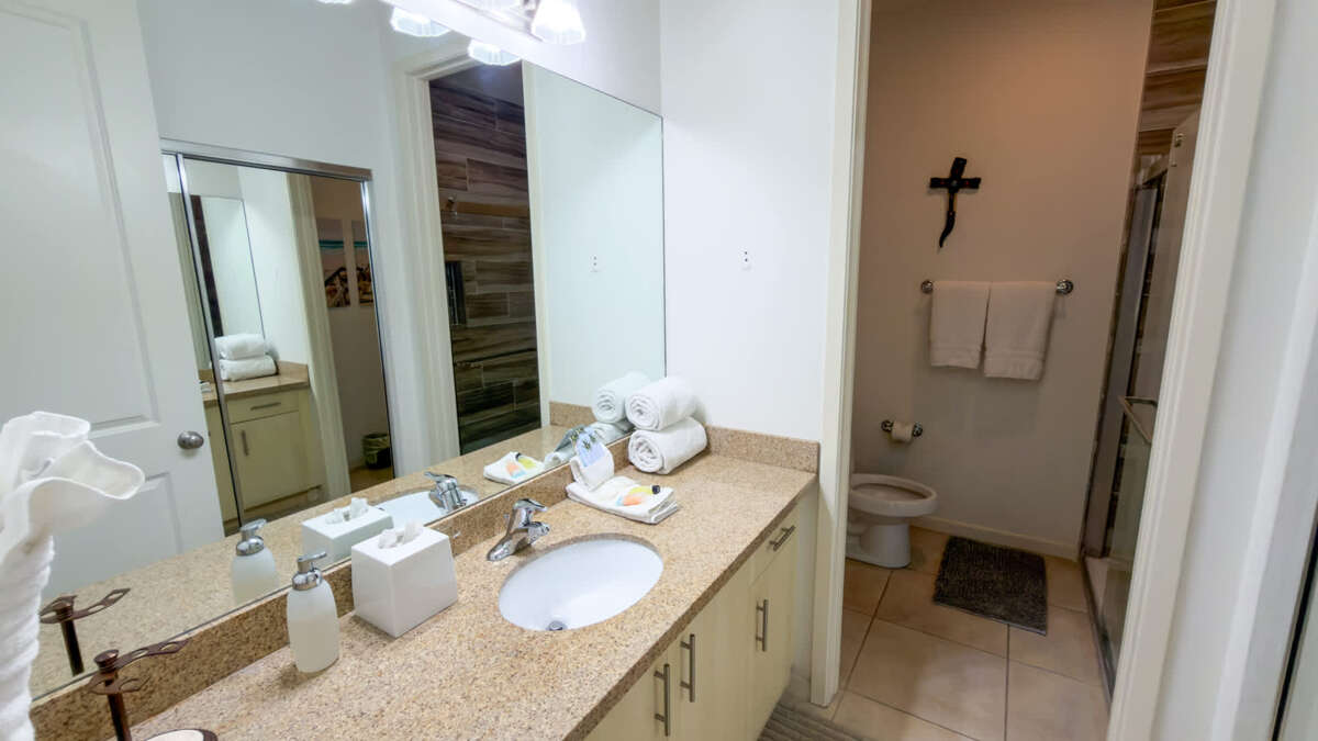 Two full bathrooms can be shared between these 2 guest bedrooms which is really nice for getting ready.