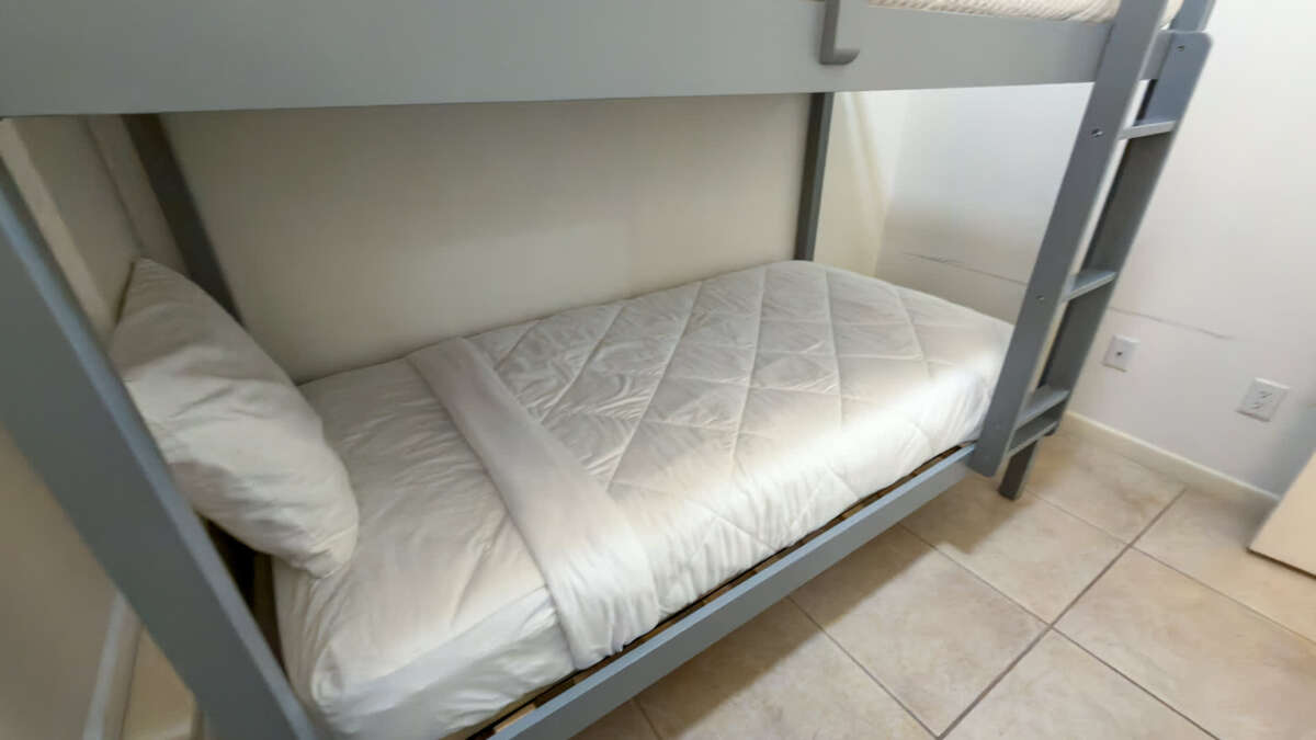 The third guest bedroom has twin sized bunk beds. We do provide a supplemental airbed queen sized with a pump in one of the closets - please bring bedding if you plan on using. There is not a pull out couch in this condo unfortunately