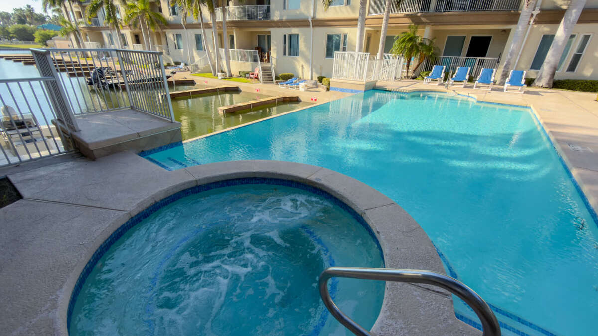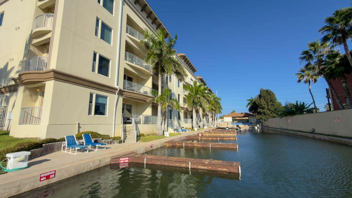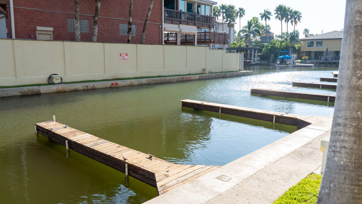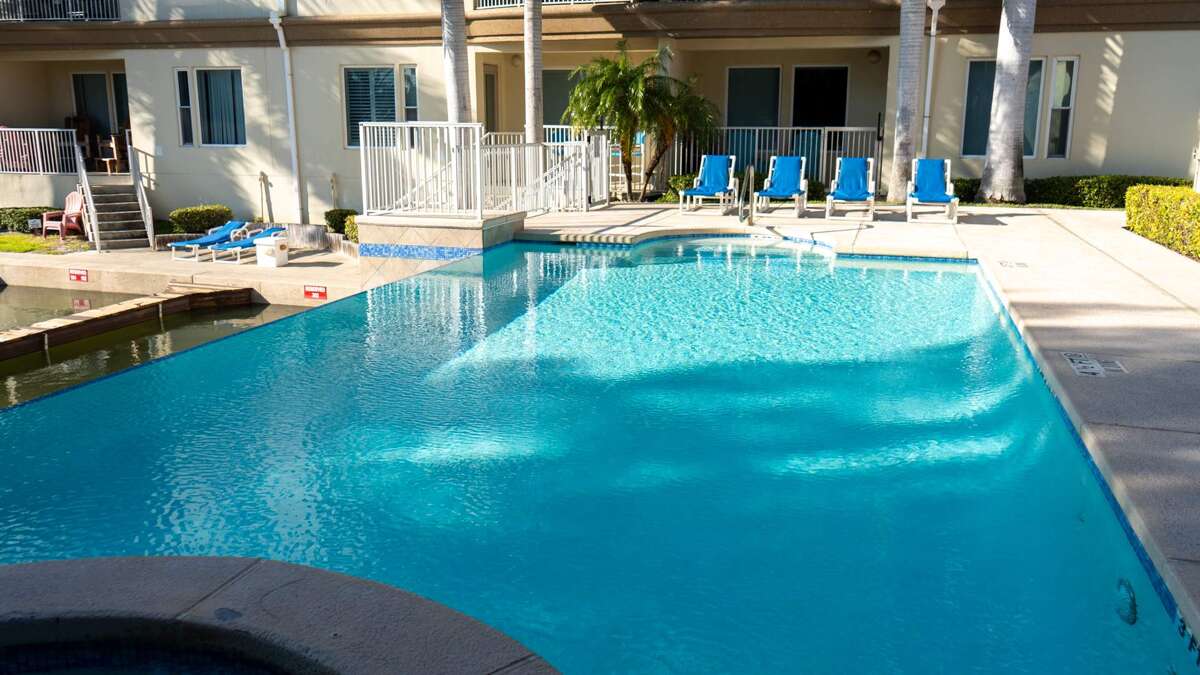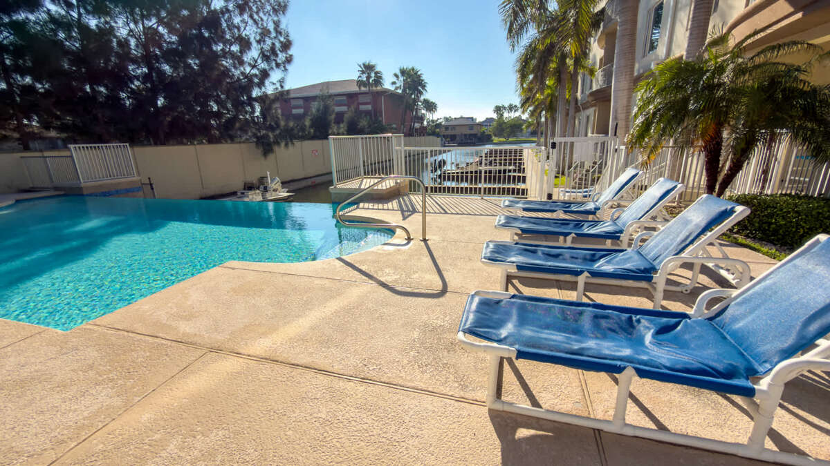 While this complex is about 1.5 to 2 blocks to the beach it does have a truly attractive swimming pool / deck area overlooking the channel & boat slips to finish off your kiddos energy after a long day at the beach. Please note that while the pool / patio area are gated, there is access to the boat slip areas here