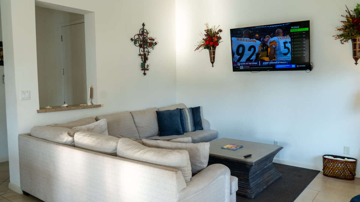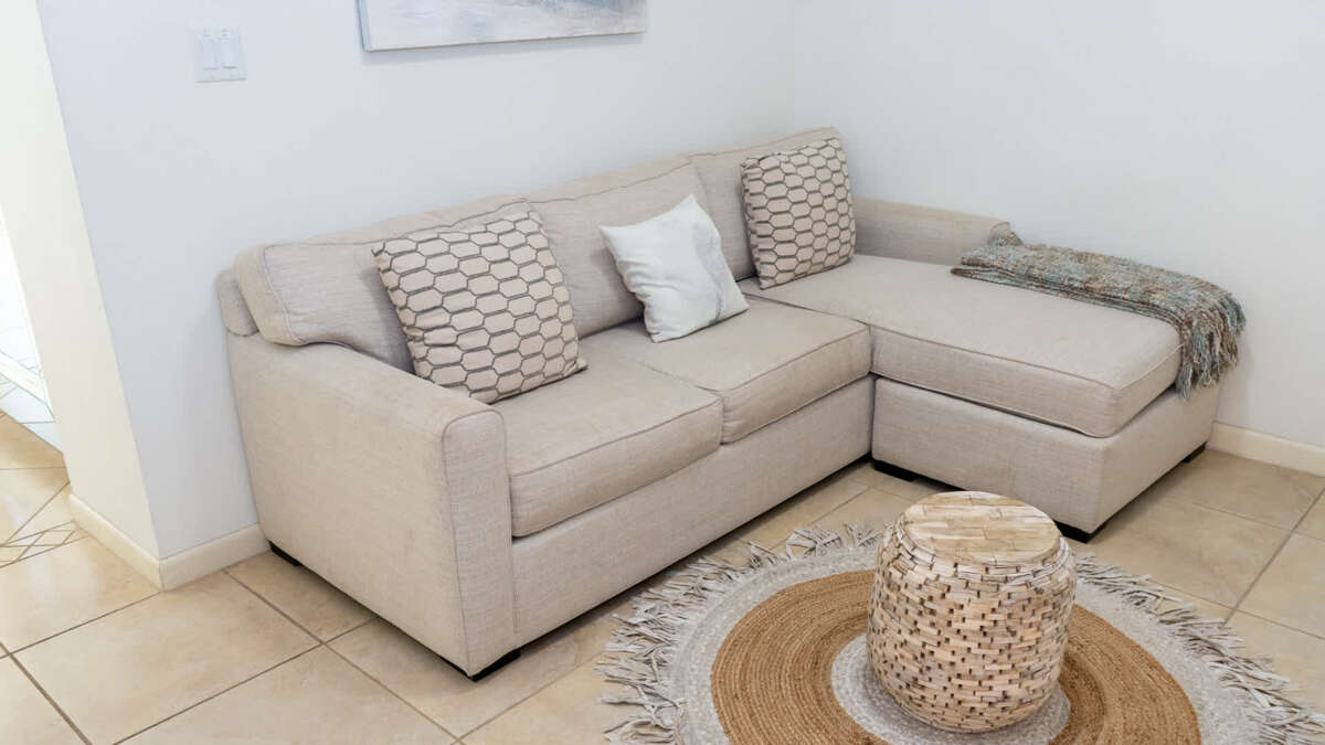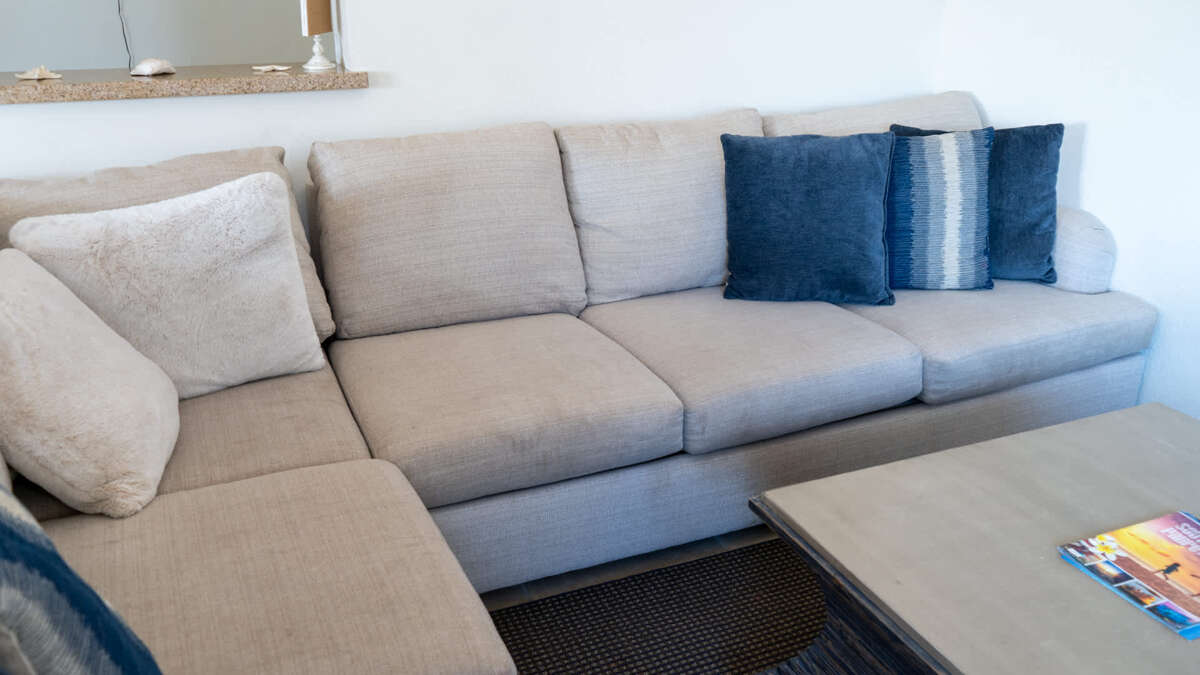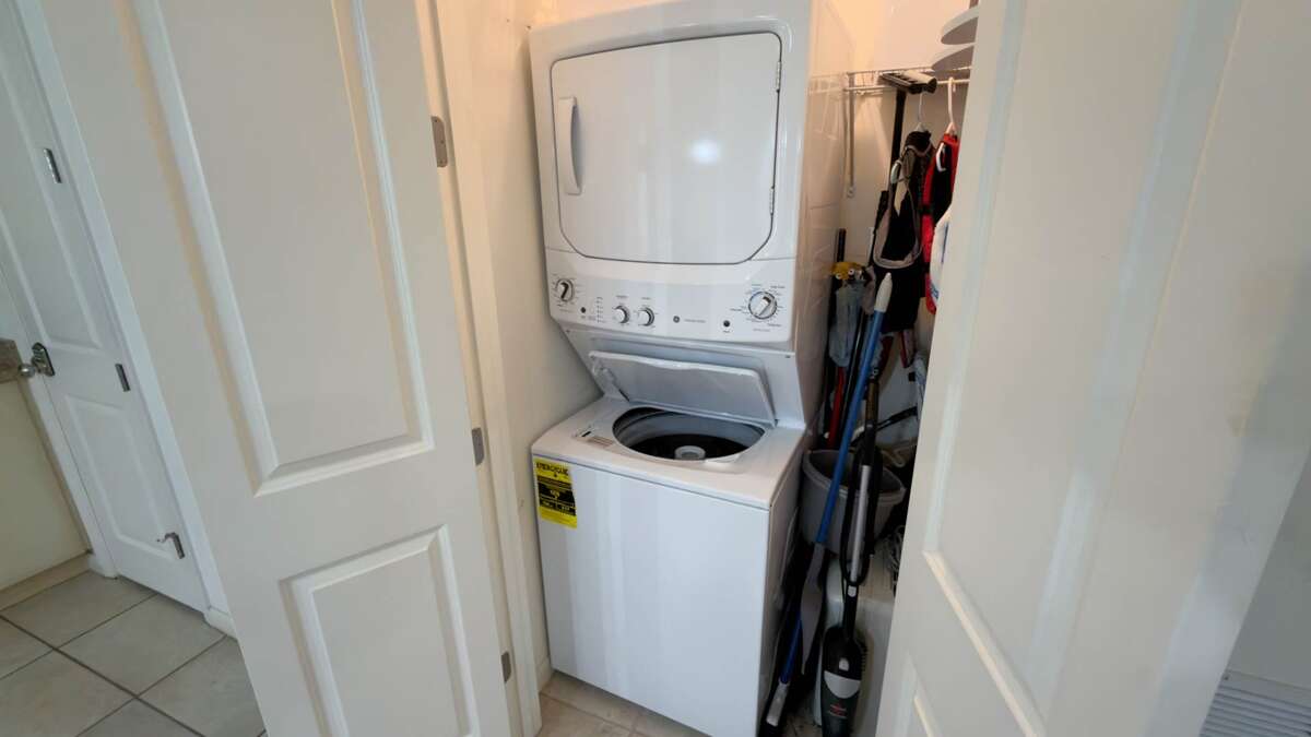 There is a washer & dryer stackable (don’t know it has) that is nice to freshen up during your stay or before you go home. While this condo is not brand new nor fully remodeled it definitely has an upgraded feel – plus professionally cleaned and has all tile floors plus comfortable furniture we think you will enjoy. The overall square footage is about 1400.