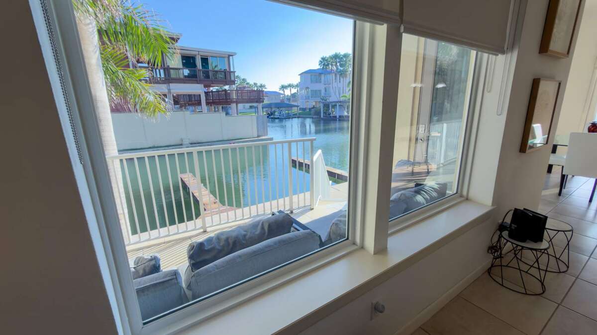 Enjoy a very comfortable space for families right on the channel & water As you walk in you will notice the water/channel view & living room that flows thru to the dining & open concept kitchen with a glass door to your private patio outside that has a BBQ grill & patio stairs overlooking a really cool boat slip area. Yes, there is a very hard to find private boat slip for this property suitable for a shallow sport or bay type boat – please inquire on max size